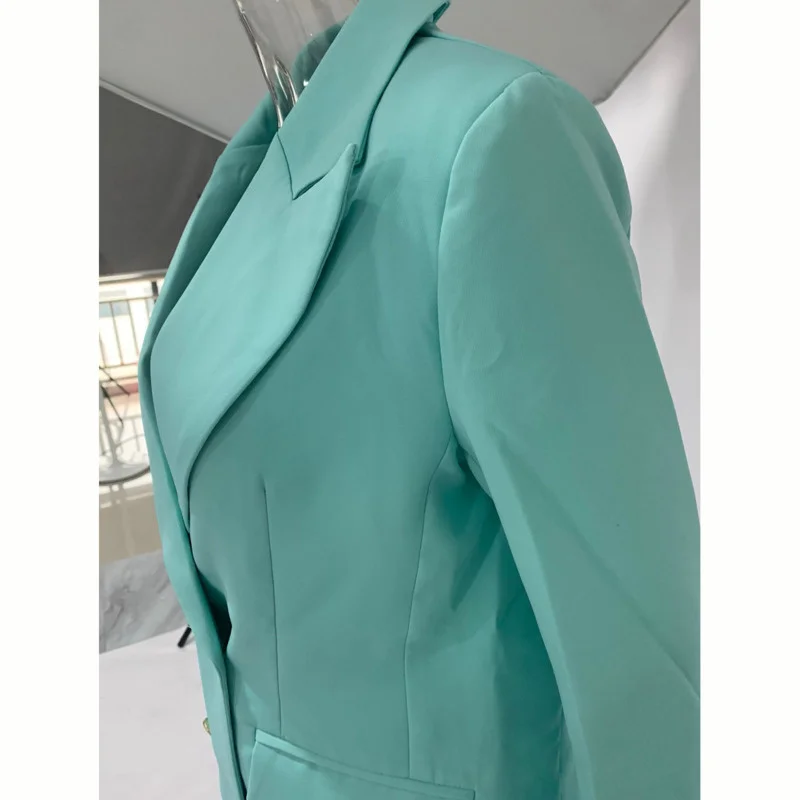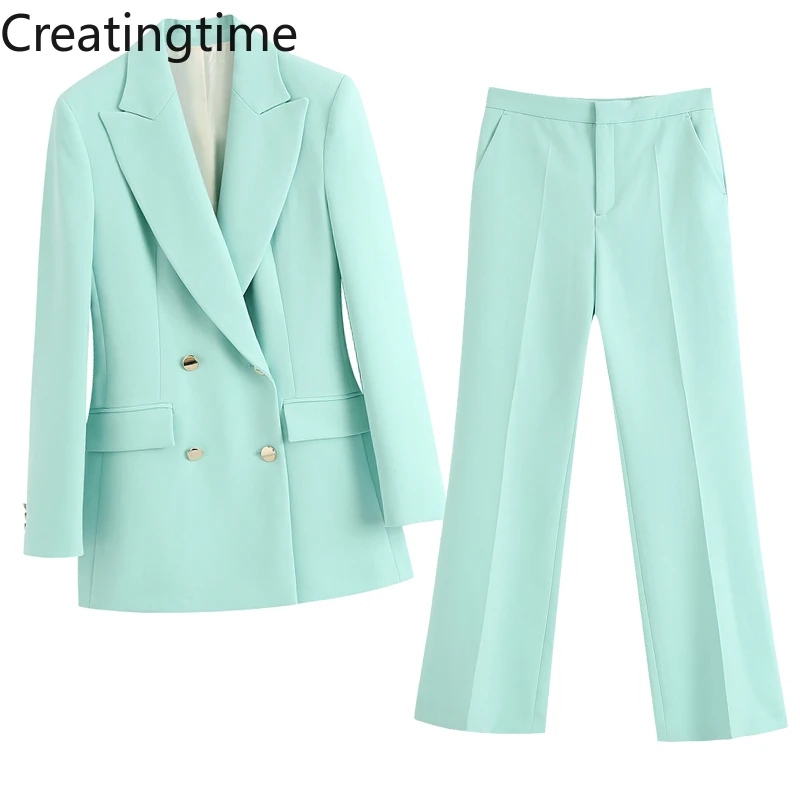 Новинка весна-осень 2022 шикарный двубортный пиджак Creatingtime с отложным воротником и широкие брюки с высокой талией комплект из двух предметов GA177