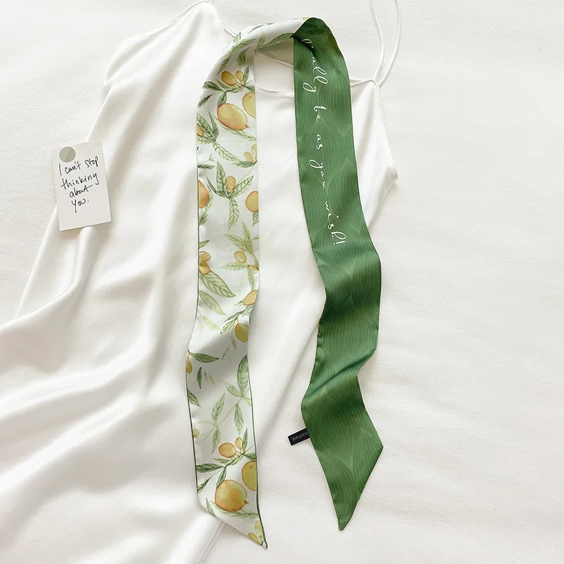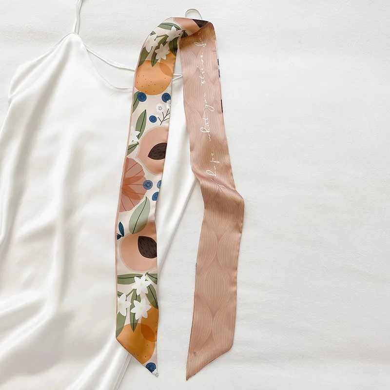 Женский узкий тонкий шарф с буквенным принтом, Длинные ленты с ручками для сумок, многофункциональный декоративный шейный платок, повязка для волос