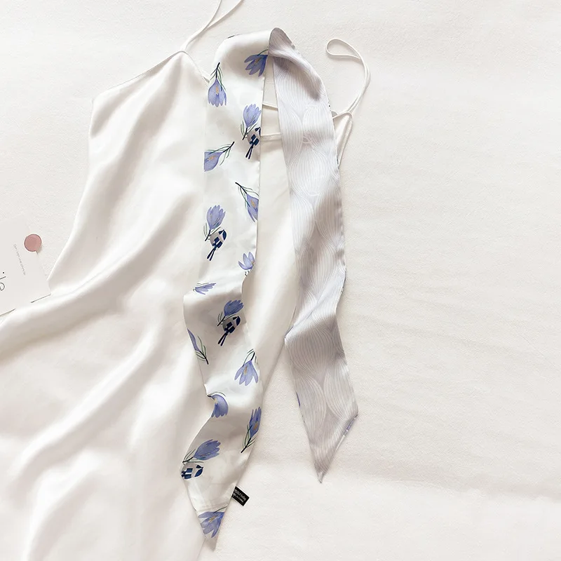 Шарф женский атласный, с принтом сделай сам, маленькая лента для уз...