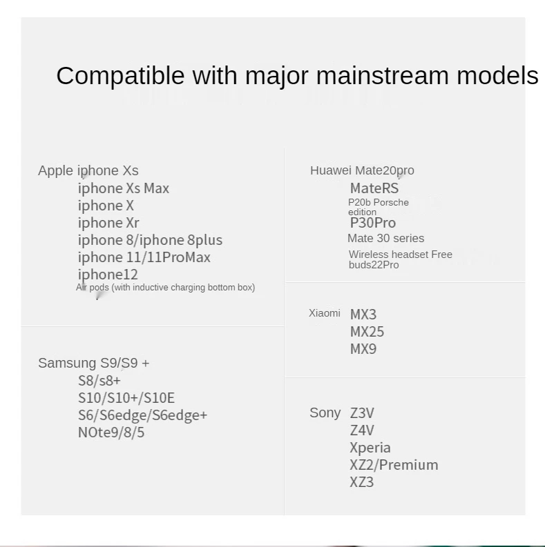 1. Для iPhone 8, 8plus, xs, x, XR, для Galaxy S8, s7, s6 edge и т. д. Для xiaomi MIX 2s 3 6 7 4 MI9 для google NEXUS S для nokia lumia 820 830 920 925 для huawei p30 pro mate 20 RS Pro2. Спецификация: Беспроводная зарядка № 3 в 1 * зарядное устройство * подставка * Легкая Быстрая зарядка типа C до 5 Вт для беспроводных устройств Qi, включая iphone, samsung Galaxy, Huawei и многое другое * упрощает и убирает ваше рабочее пространство с удобством беспроводной зарядки * Зарядка через светящиеся пластиковые чехлы до 3 мм * предназначена для устройств с поддержкой Qi, включая iphone 11, 11 Pro, 11 Pro Max, XS, XS Max, XR, X, 8, 8 Plus, Galaxy S6, S8, S9, S8 +, Note8, Note5, Note7, Note6, Huawei P30 pro mate RS, 20, 20 pro и многое другое3. Посылка: 1 Беспроводное зарядное устройство S21 pro 1 usb-кабель 1 Руководство пользователя4. Если у вас есть какие-либо вопросы о лучшем послепродажном обслуживании, пожалуйста, свяжитесь с нами напрямую.