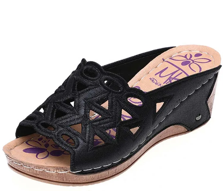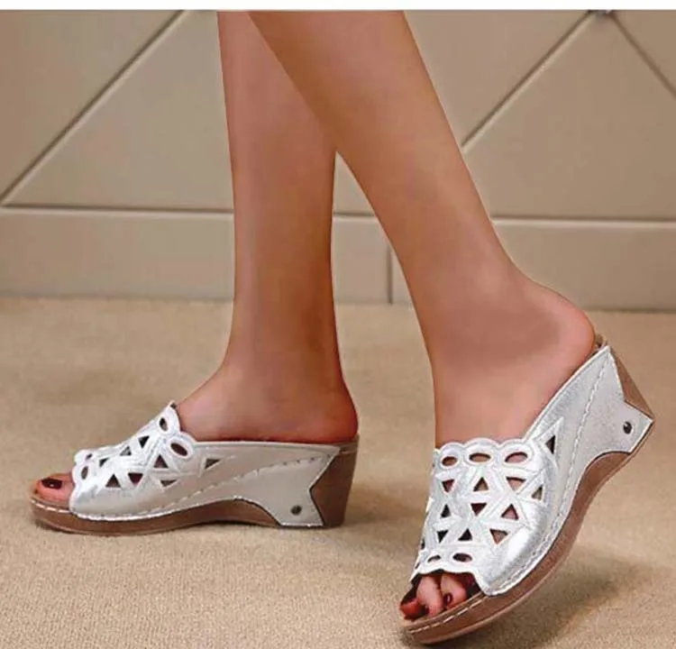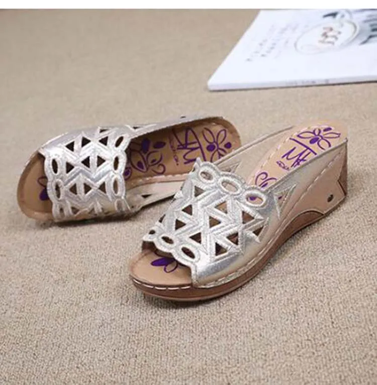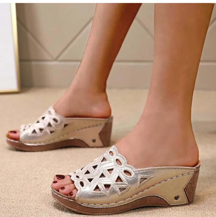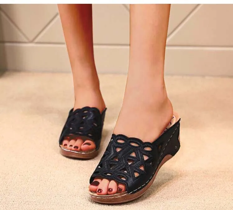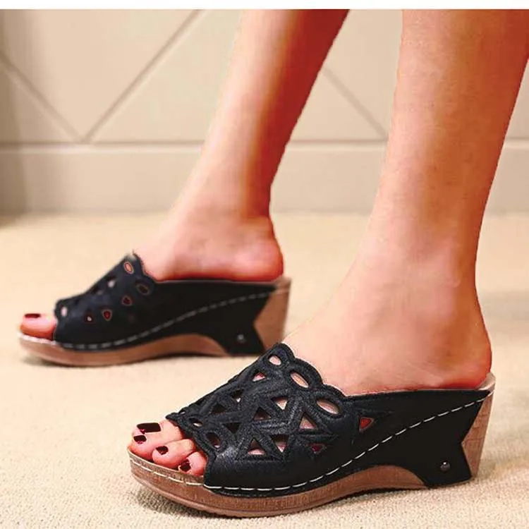Сандалии женские с открытым носком, босоножки на танкетке, без застежки, с вырезами, модная обувь