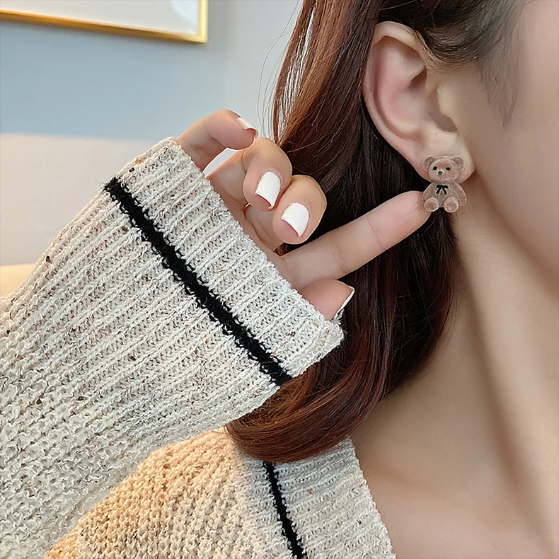 Флокированные плюшевые серьги в виде кролика, милые коричневые серьги в виде животных цвета хаки для женщин и девушек, корейские серьги, ювелирные изделия, подарки