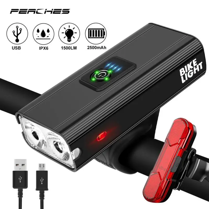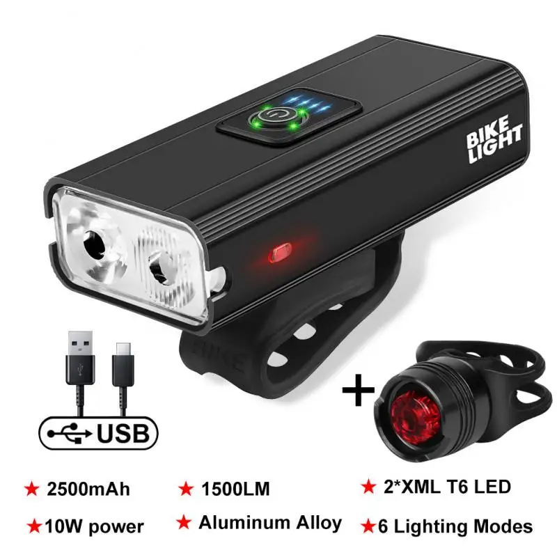 Новый светодиодный велосипедный фонарь T6, 10 Вт, 1500 лм, зарядка через USB, дисплей мощности, Передний фонарь для горного и дорожного велосипеда, задний фонарь, комплект с вспышкой