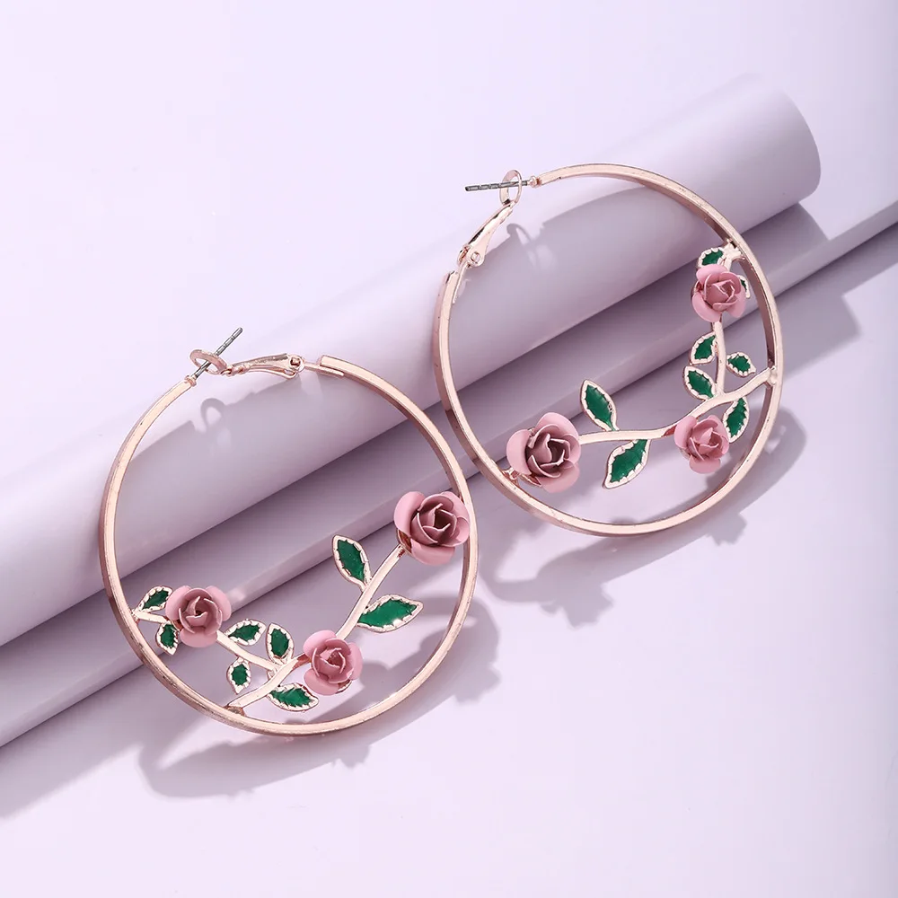 Новые серьги в стиле ретро с цветами розы для женщин и девушек, элегантные большие полые цветочные круглые кольца из сплава, серьги, ювелирные изделия, подарки