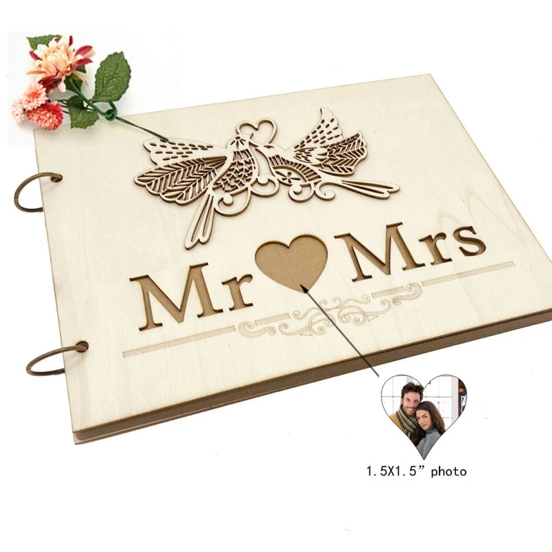 Свадебная Гостевая книга мистер миссис, персонализированная деревянная книга для влюбленных, сделай сам, фото, подпись, книги, альбом для памяти, Подарок на годовщину
