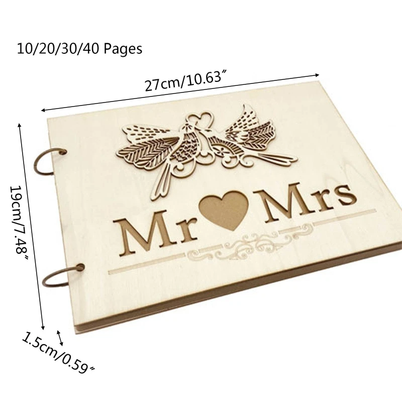 Mr Mrs Свадебная Гостевая книга персонализированные деревянные Lovebirds Гостевая книга DIY Фото Подпись книги памяти альбом юбилей подарокOOTDTY100% новый и высокое качествоОсобенности:С прочным деревянным покрытием Вы можете ценить свои воспоминания более года.Можно использовать в качестве гостевого знака для помолвки или свадебные вечерние вечеринки.Гости могут просто подписывать страницы гостевых книг и бесплатно оформлять рекомендации для молодоженов.Запечатлейте все прекрасные воспоминания, созданные в день вашей свадьбы, с помощью этой потрясающей Деревянной Книги для гостей.Идеальный подарок идея для деревенского keepsake свадебный подарок.Характеристики:Количество страниц: 10/20/30/40 страницМатериал: ДеревянныйРазмер: app.27x19x1.5cm/10.63x7.48x0.59inЦвет: как показано на фотографииКоличество: 1 комплектПримечание:Возможны отклонения в 0-1 см вследствие измерений вручную. Пожалуйста, убедитесь, что вы не возражаете, прежде чем сделать ставку.Из-за разницы между различными мониторами изображение может не отражать фактический цвет изделия. Спасибо!Посылка включает в себя:1 комплект x Гостевая книга (другие демонстрационные аксессуары на картинке не включены.)