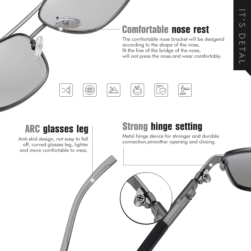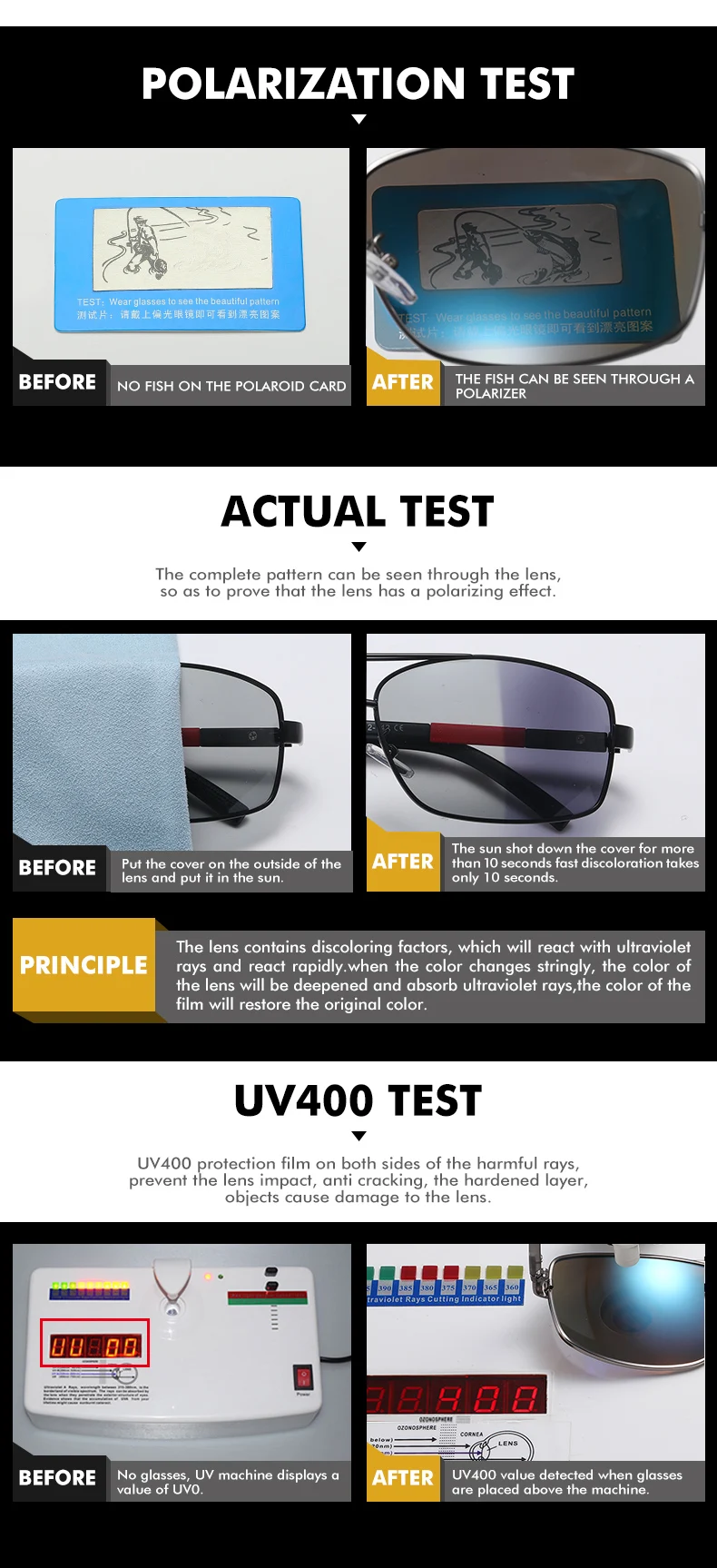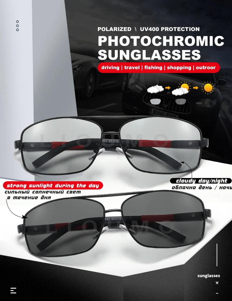 Очки солнцезащитные LIOUMO мужскиеженские квадратные, поляризационные классические фотохромные очки с умным обесцвечиванием