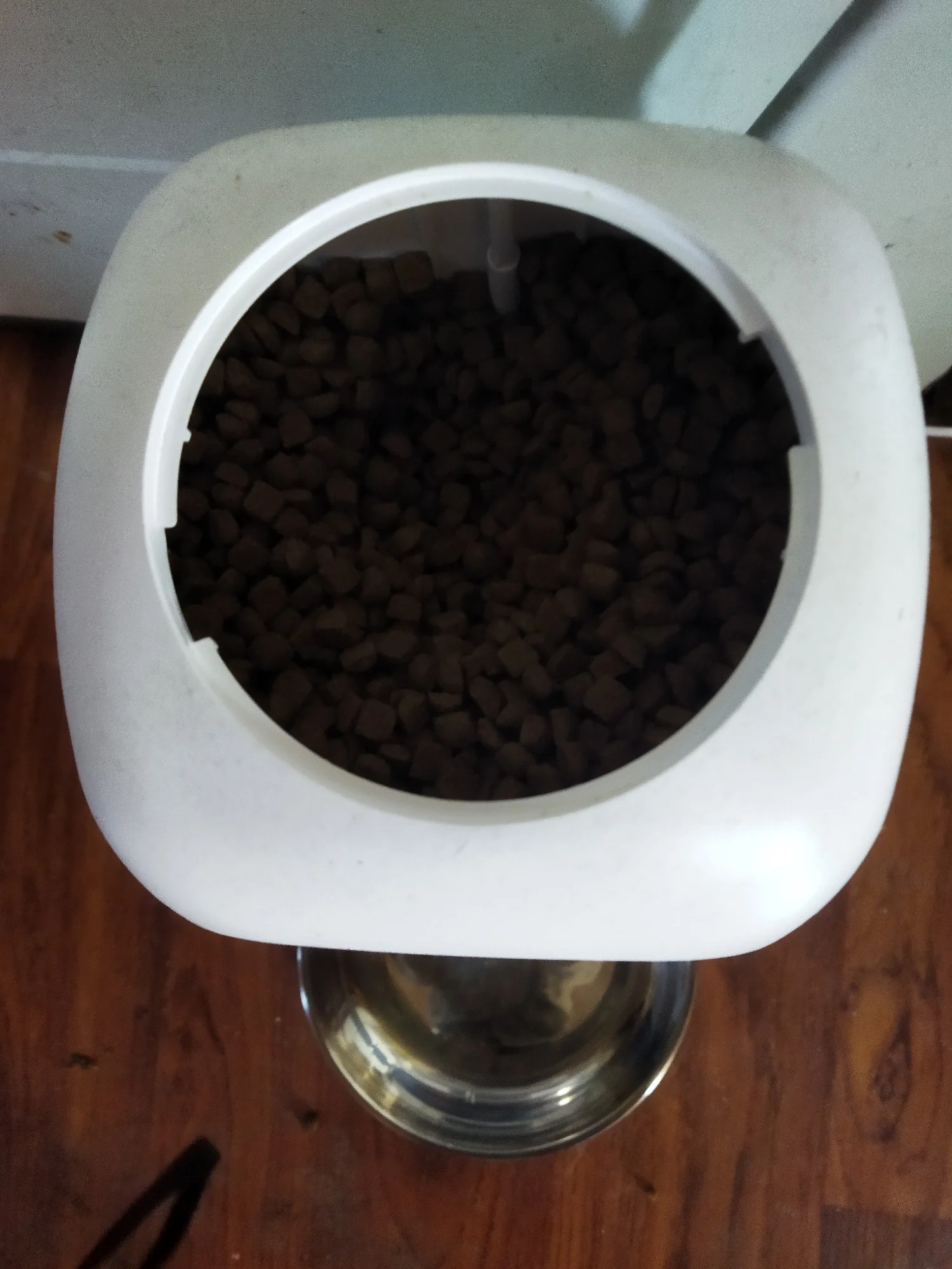 Купила коту, очень довольна. Впереди отпуск две недели, живу в частном доме, кот гуляет свободно, думаю выживет. С приложением пришлось повозиться, но справилась. Скачала с магазина гугл плей приложение smart life, зарегистрировалась, выбрала нужный гаджет, через вай-фай его сопрягла и установила план кормления. Работает уже месяц, без сбоев, только шумно высыпается, но я последнюю кормёжка выставила на 24 ч. Батарейки на всякий случай тоже вставила. Корм Мираторг, сыпется нормально, влезает много, 1,5 кг точно. Кот сразу, без проблем, стал подходить и есть.