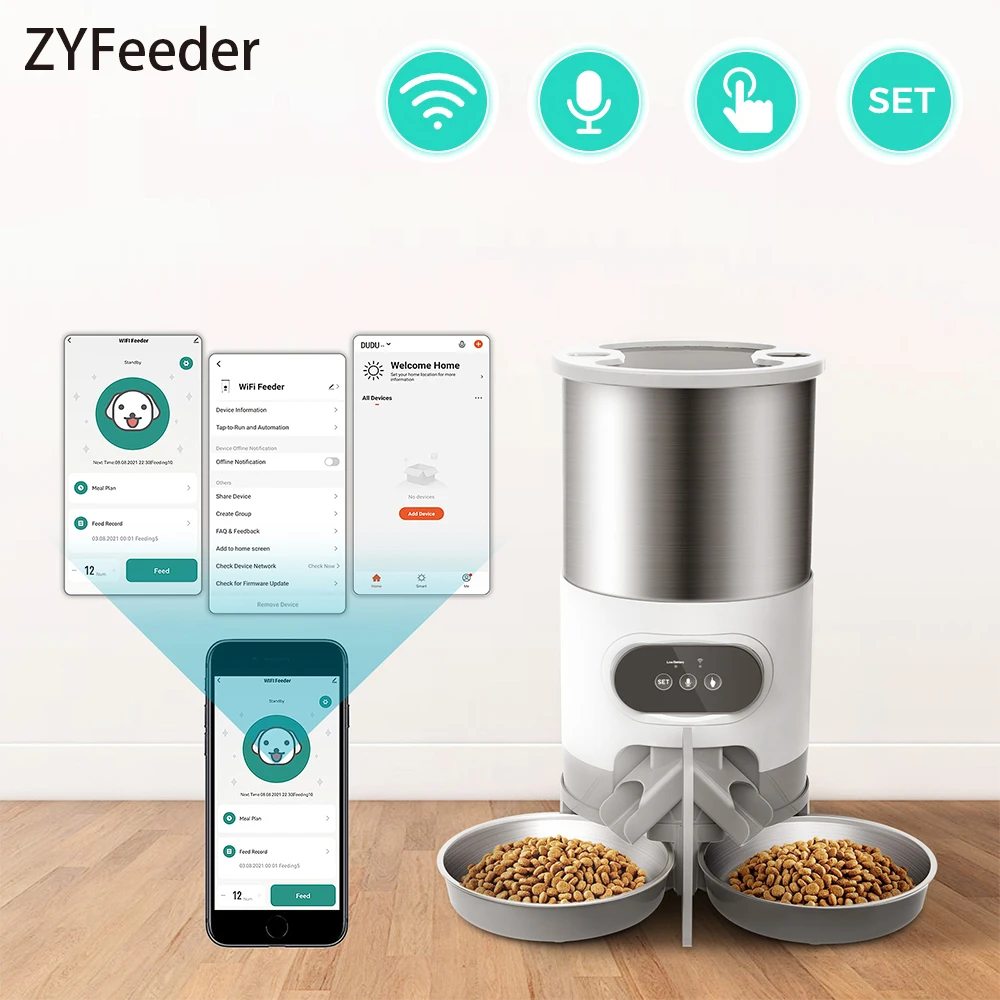 Умная автоматическая кормушка для домашних животных с Wi-Fi и управлением через приложение, миска из нержавеющей стали для кормления кошек и собак с таймером для записи, кормление домашних животных