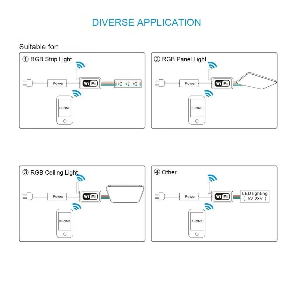 Контроллер Wi-Fi для светодиодной ленты, контроллер для Android и IOS, приложение Apple, Xiaomi, Oppo, Huawei, Homekit, приложение Amazon, ALexa, Google Home lFTTT