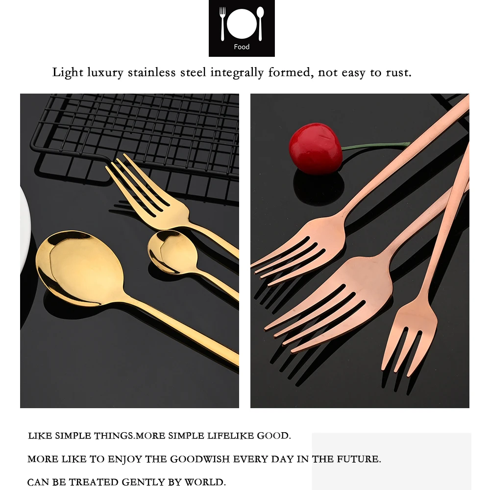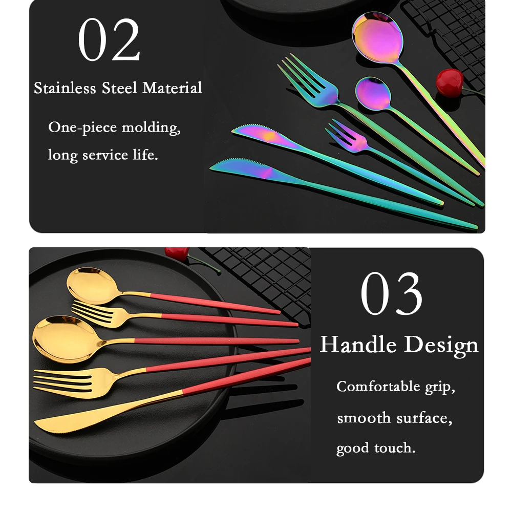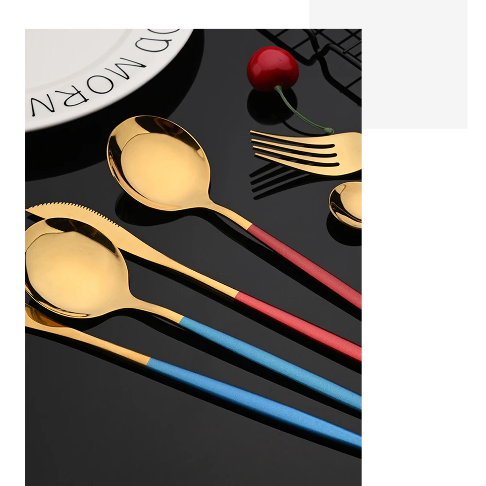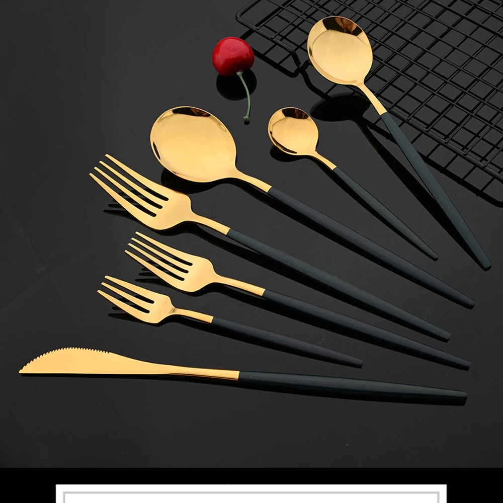 Набор столовых приборов из нержавеющей стали, комплект из 6 предметов черного и золотого цвета, вилка, нож, ложка, столовые приборы