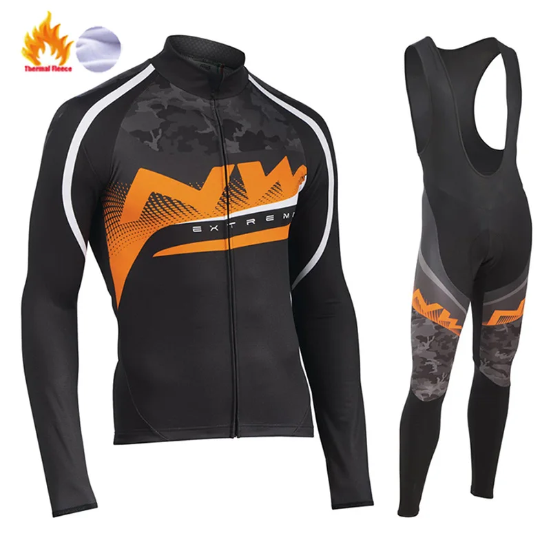 Трикотажный комплект для велоспорта, Мужская зимняя Униформа с длин...