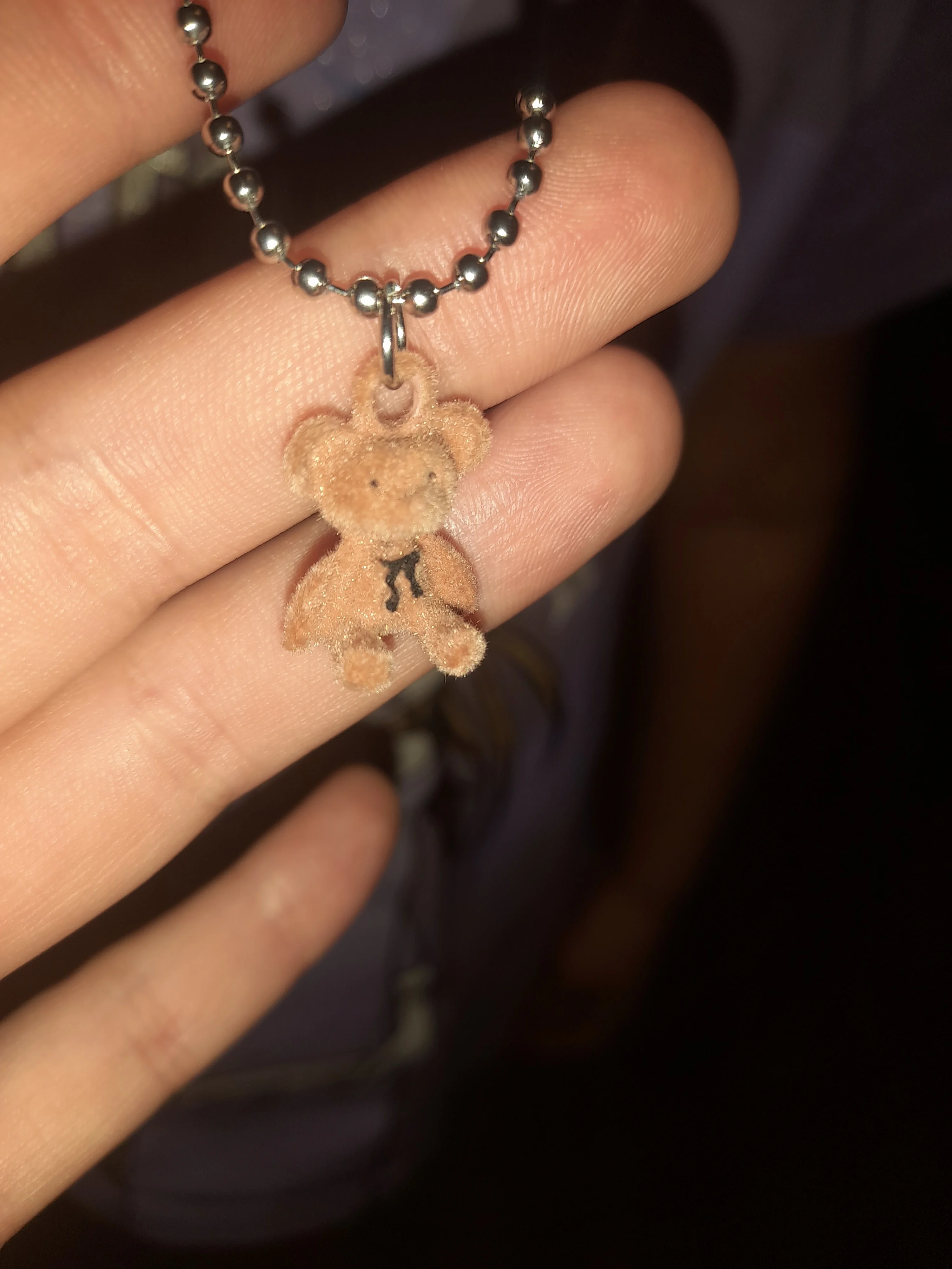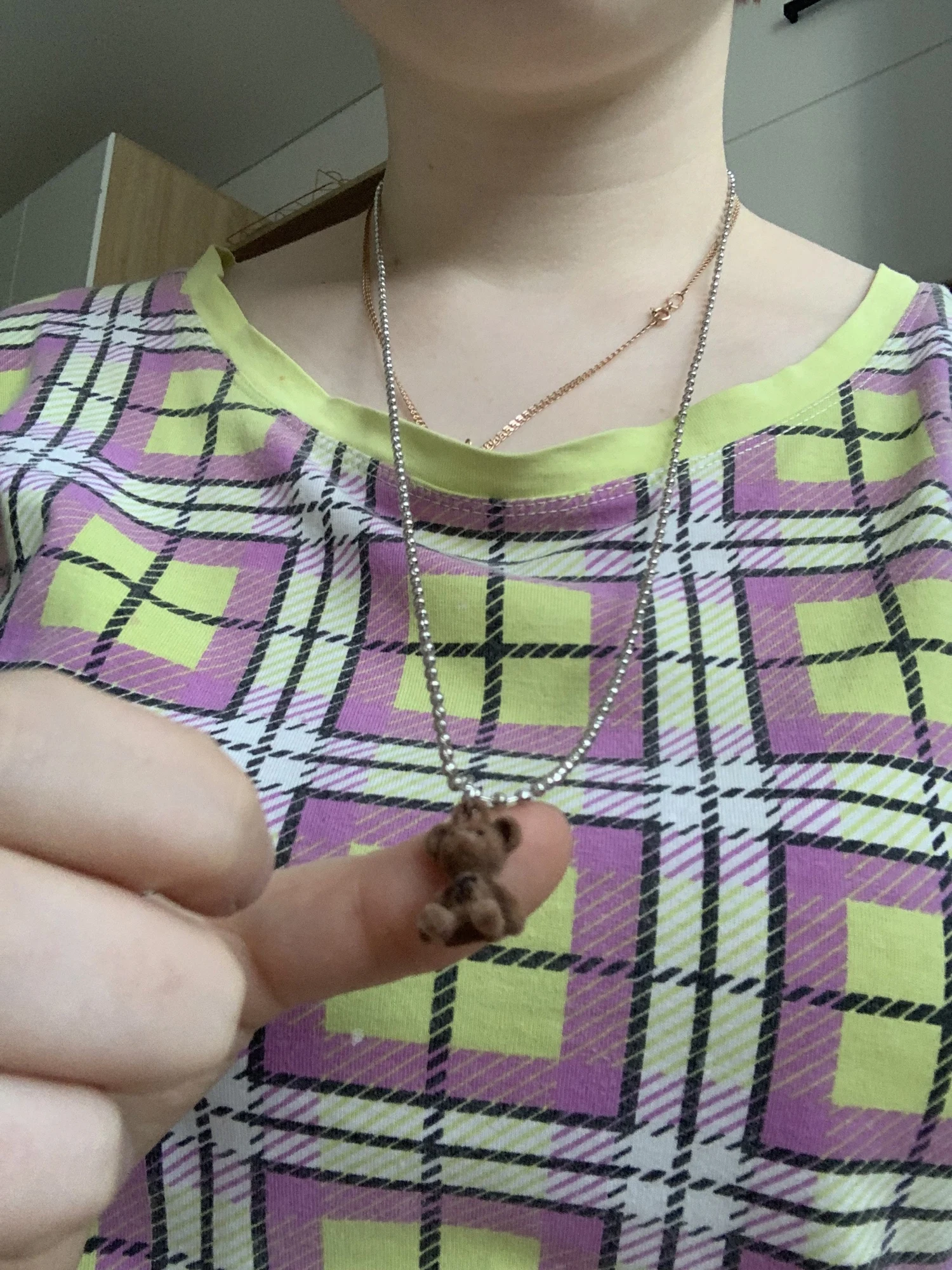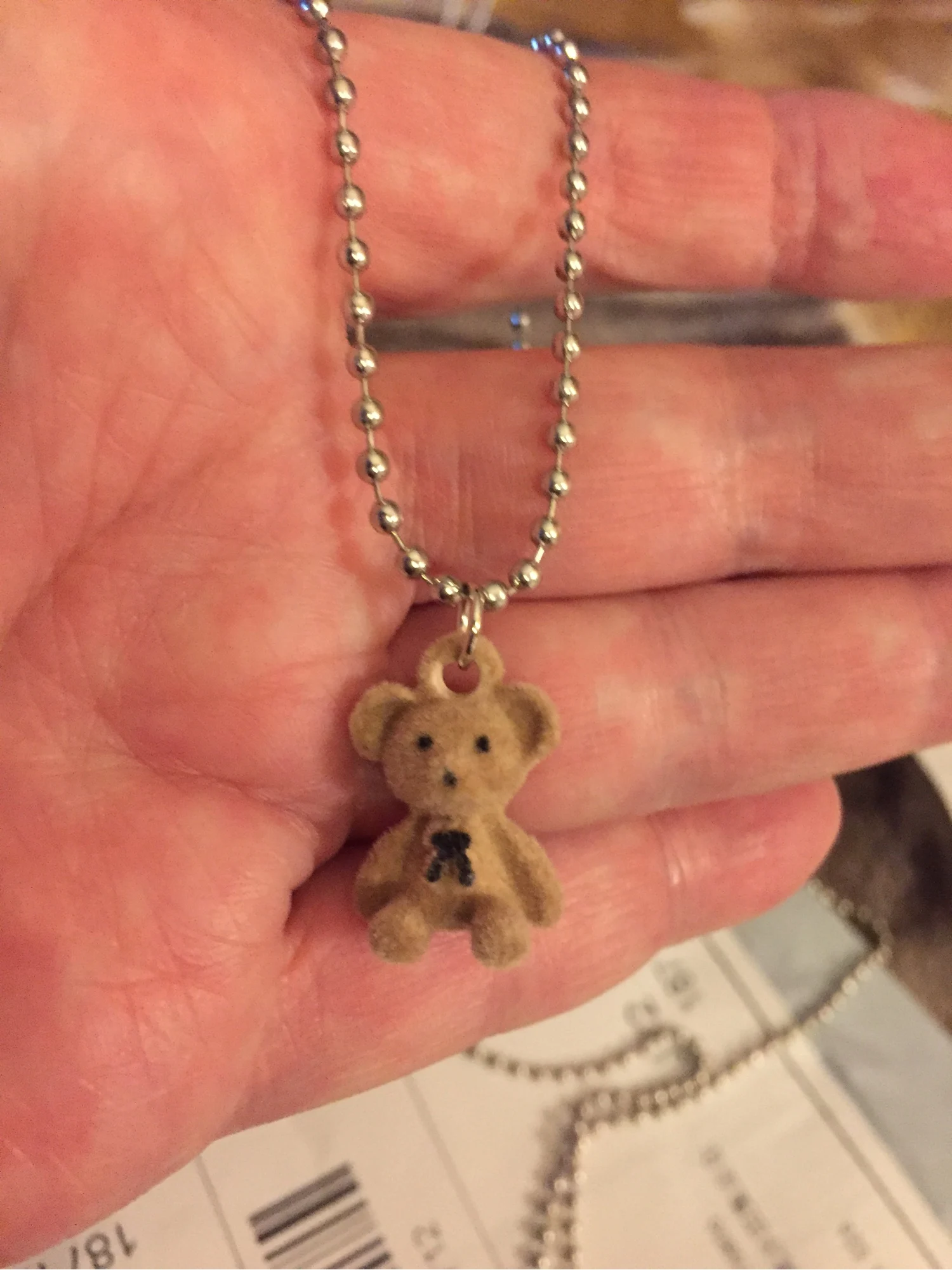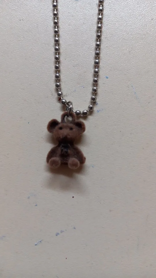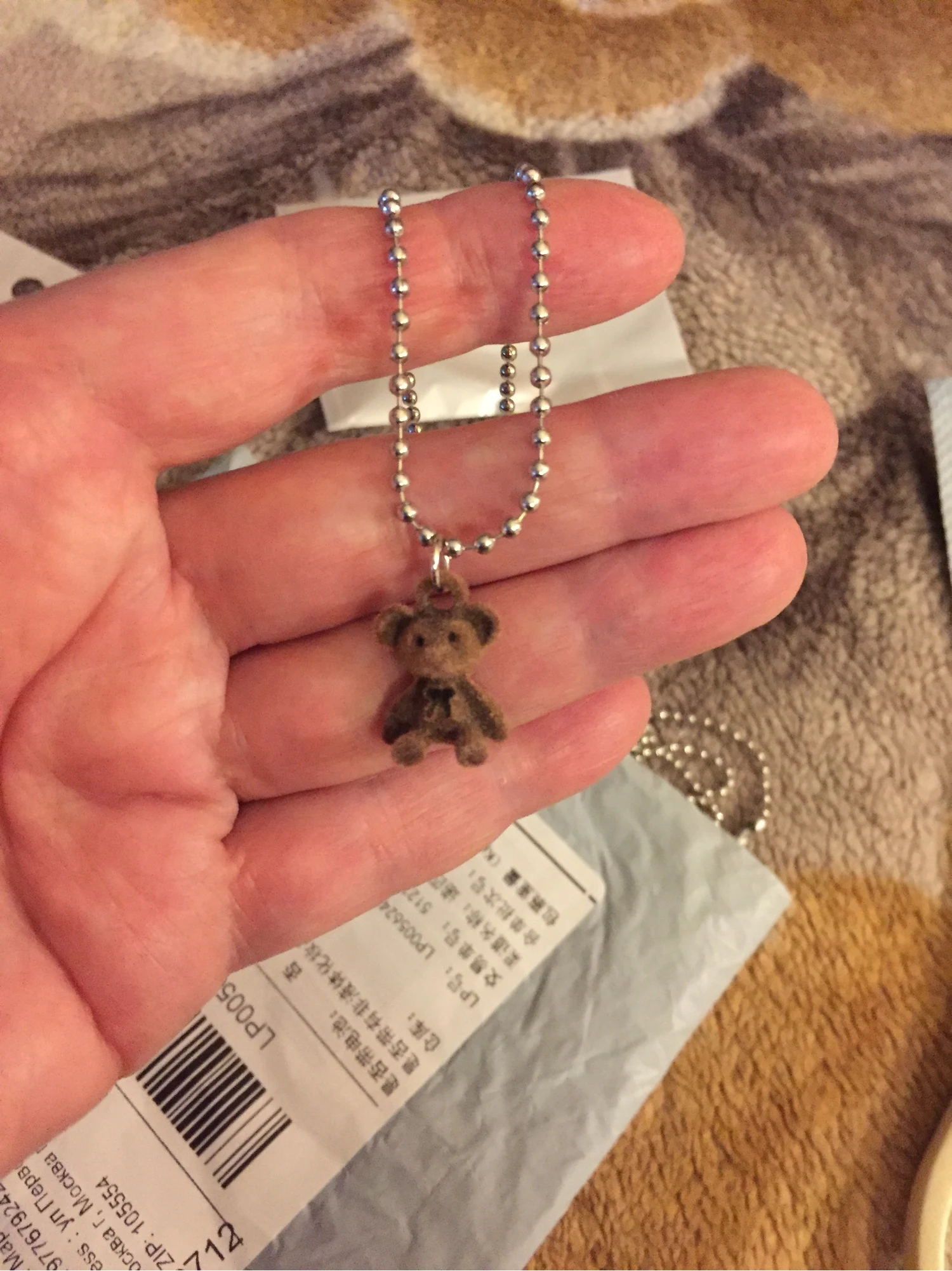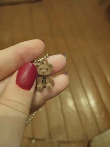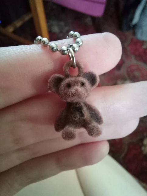 Медведь меньше, чем на изображениях, и удивительно тяжелый. Цепочка довольно тонкая и длинная.