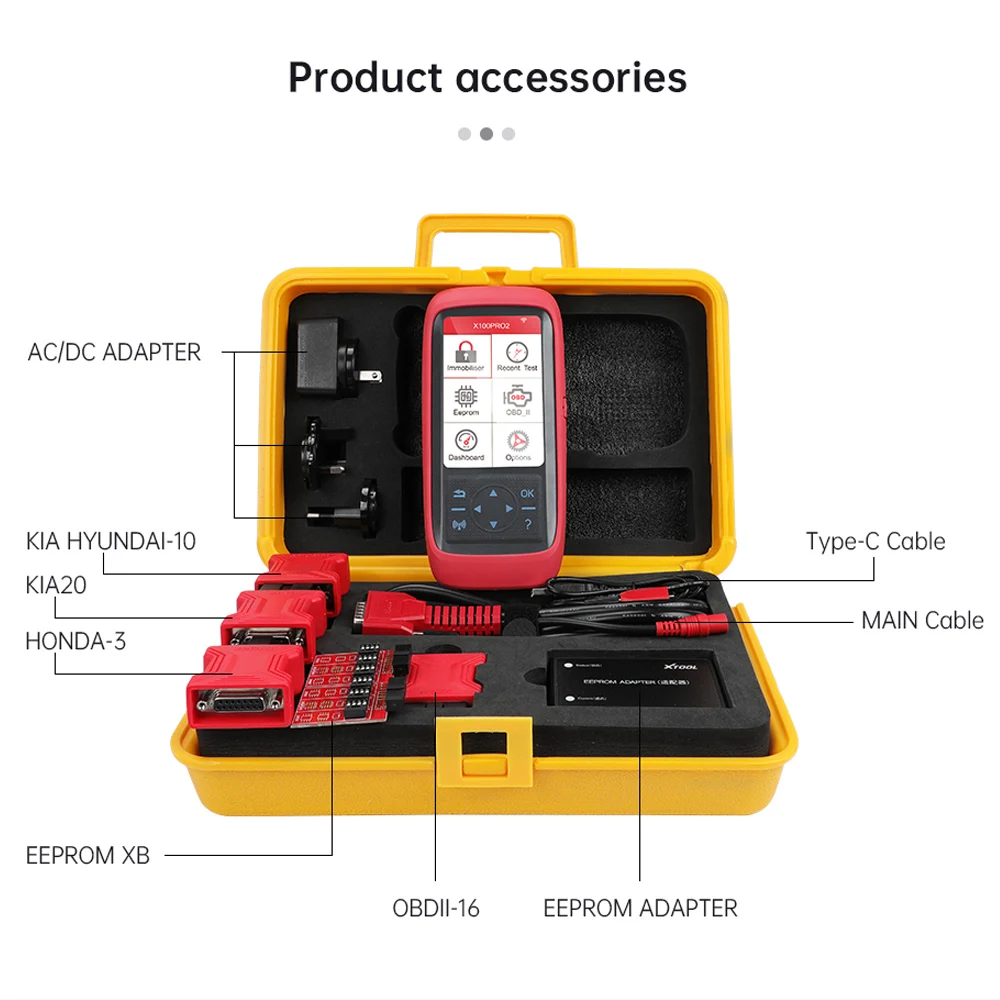X100 Pro2 включает функции программирования ключей и восстановления приборной панели. Это оборудование является антисейсмическим и долговечным, что может удовлетворить фактические потребности различных пользователей, таких как Автомобильный ремонт фабрики и мастерской.