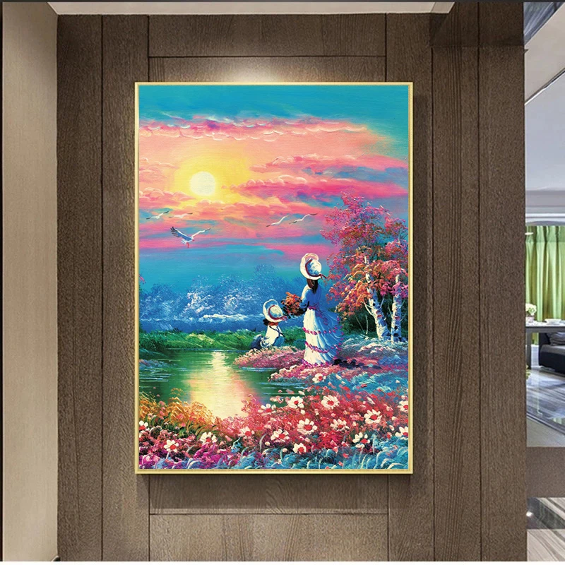 Картина на холсте с изображением восхода и пейзажа, настенные худож...