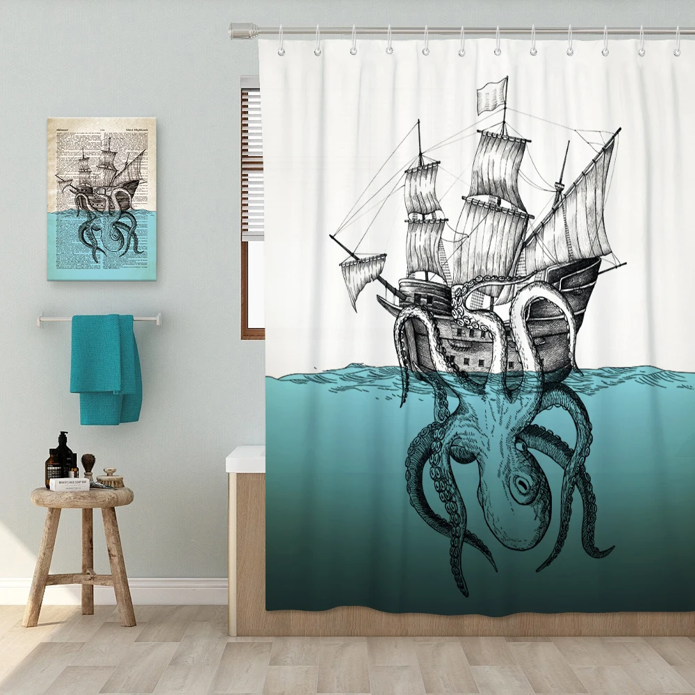 Занавеска для душа из цветочной ткани для ванной комнаты, занавеска на липучке для ванной комнаты, разноцветная занавеска для душа