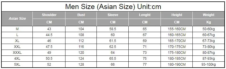 Мужской размер (Азиатский размер) Единица измерения: см