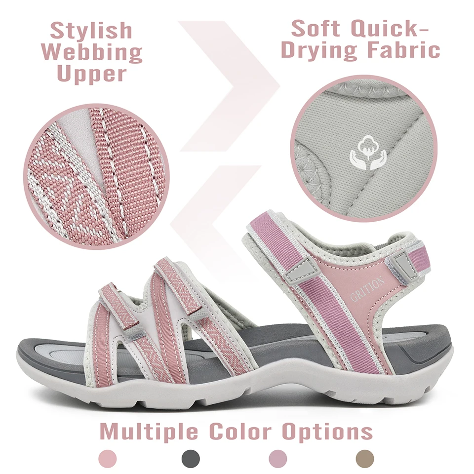 Женские пляжные сандалии GRITION, модные уличные сандалии на плоской подошве, дышащие Нескользящие летние спортивные повседневные сандалии для походов и туризма, 2022