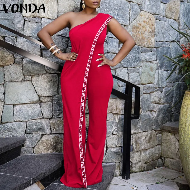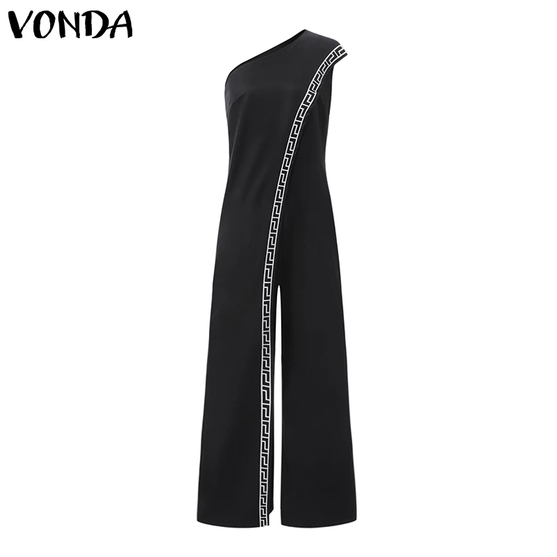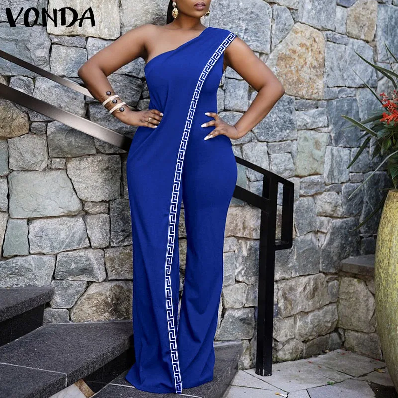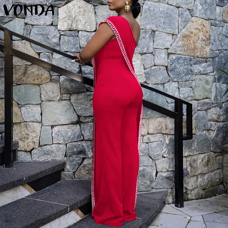 Женские комбинезоны на одно плечо, комбинезоны 2022 VONDA, винтажные комбинезоны с принтом, повседневные Комбинезоны, брюки палаццо, женские комбинезоны