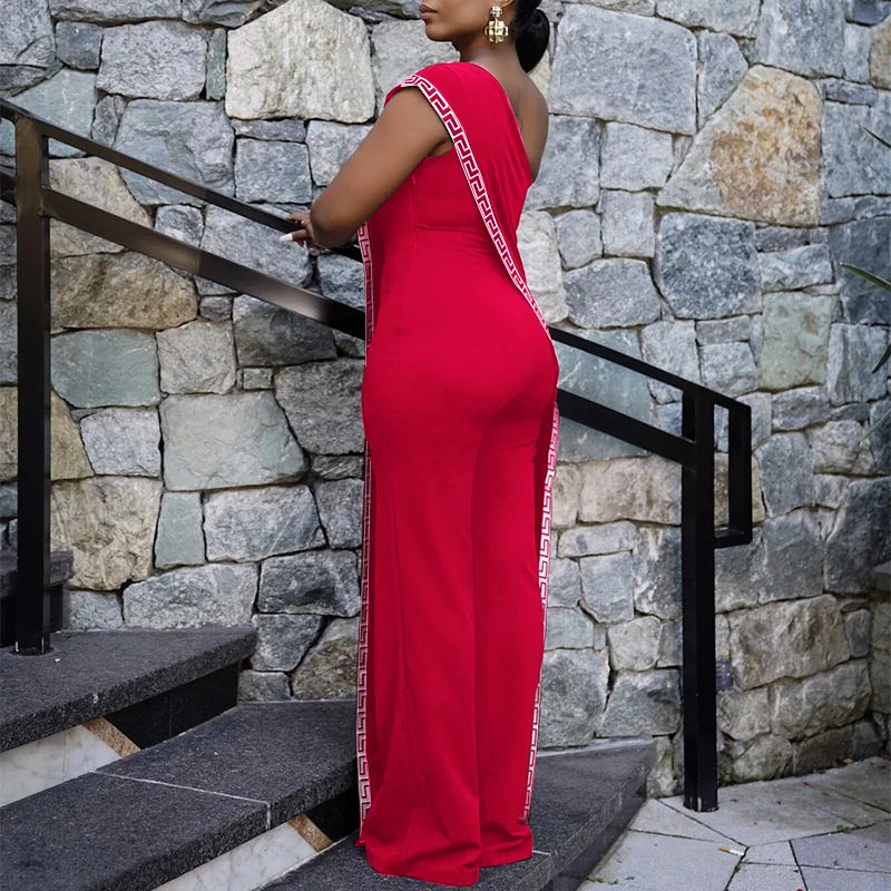 Женский комбинезон на одно плечо, с коротким рукавом и широкими шта...