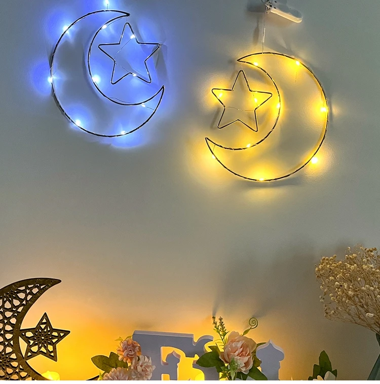 Луна Звезда подвесная Рамка для дома Исламские мусульманские принадлежности для вечеринок ИД Мубарак светильник Рамадан кареем Ид Аль Адха
