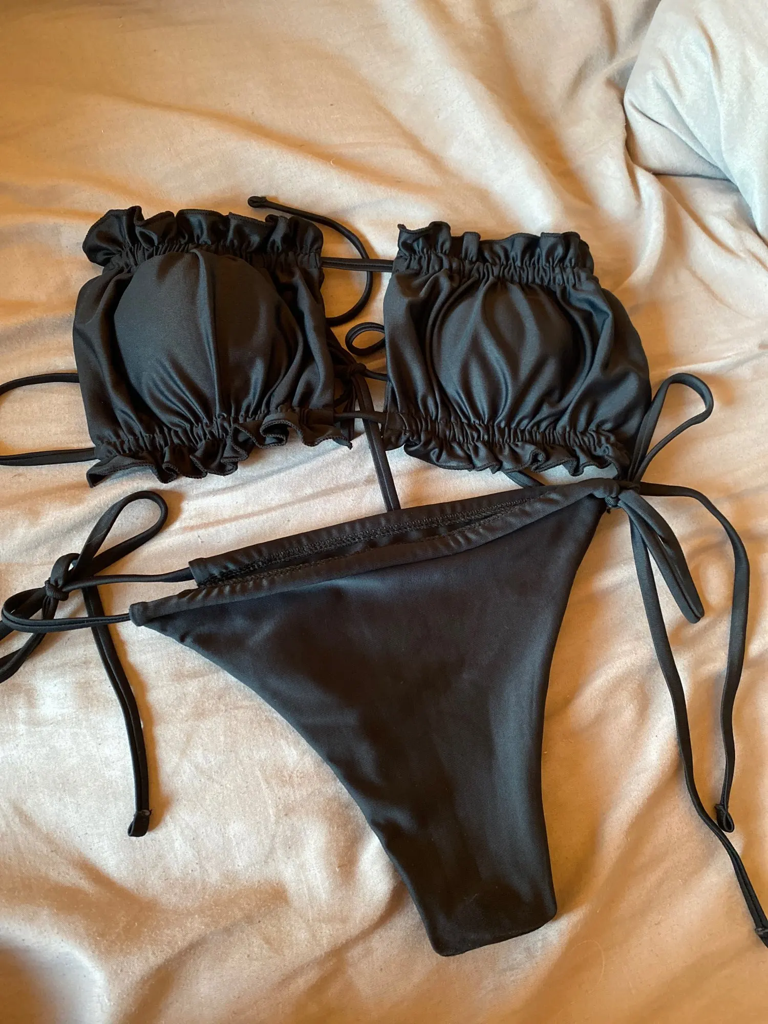 Соблазнительное бикини 2022, плиссированный купальник-бандо, женский купальник, женские Мини-стринги, комплект бикини, купальник, пляжная одежда для купания, купальный костюм
