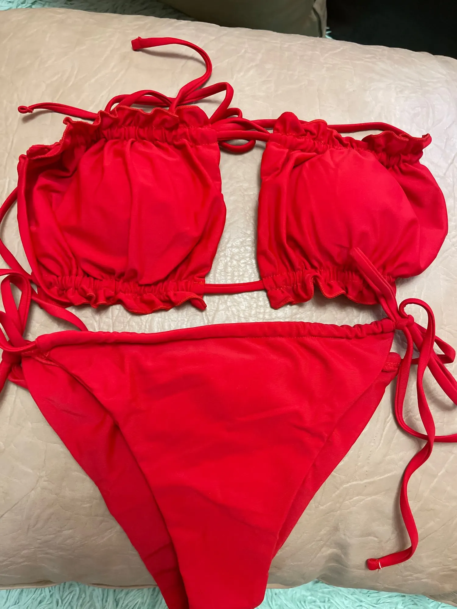 Очень красивые бикини, размер в таблице размеров. Получил быстро, хорошо упакован. Все соответствует описанию. Спасибо за понимание. Я рекомендую этот магазин и продукции.