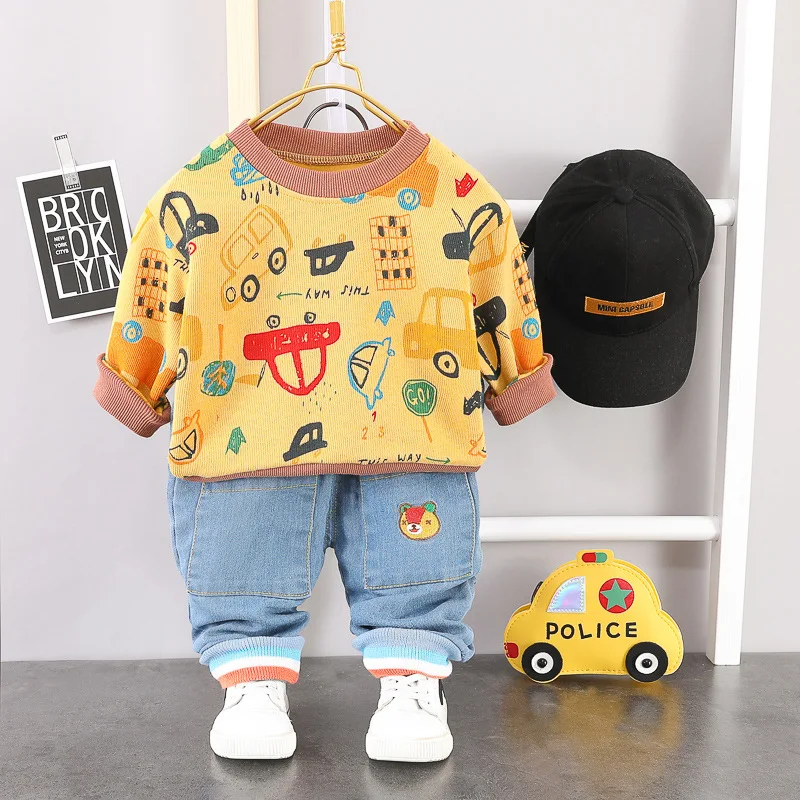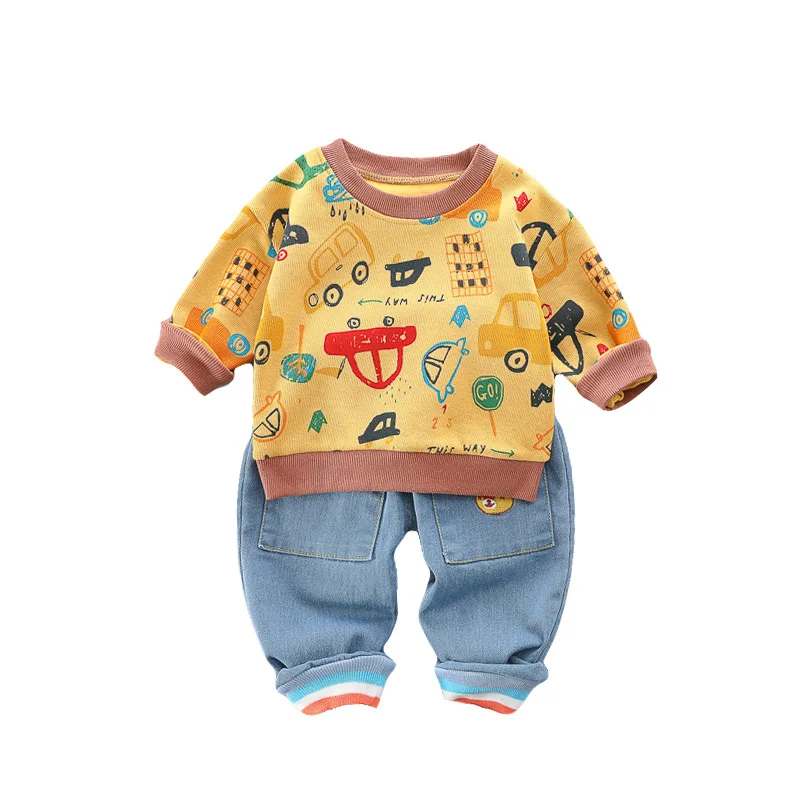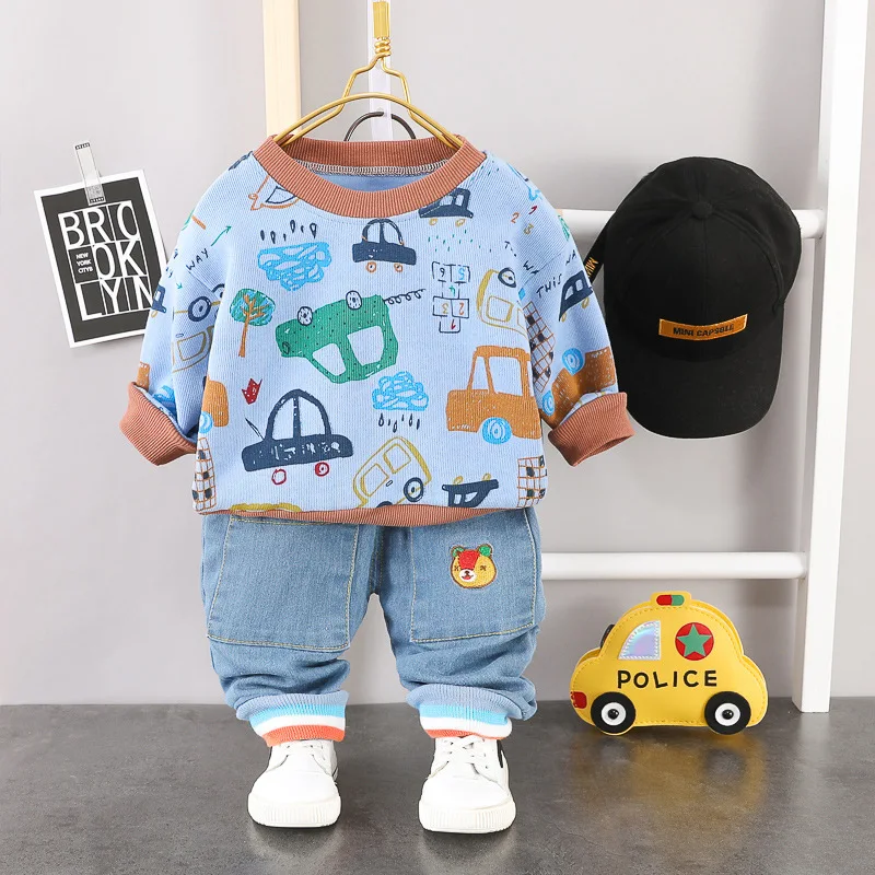 Комплект из двух предметов OLEKID, свитшот с длинным рукавом и граффити, хлопковые джинсы для девочек и мальчиков, весна-осень 2022