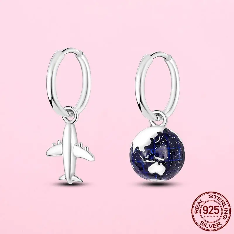 Серьги-гвоздики женские из серебра 925 пробы с ромашками, Луной и з...