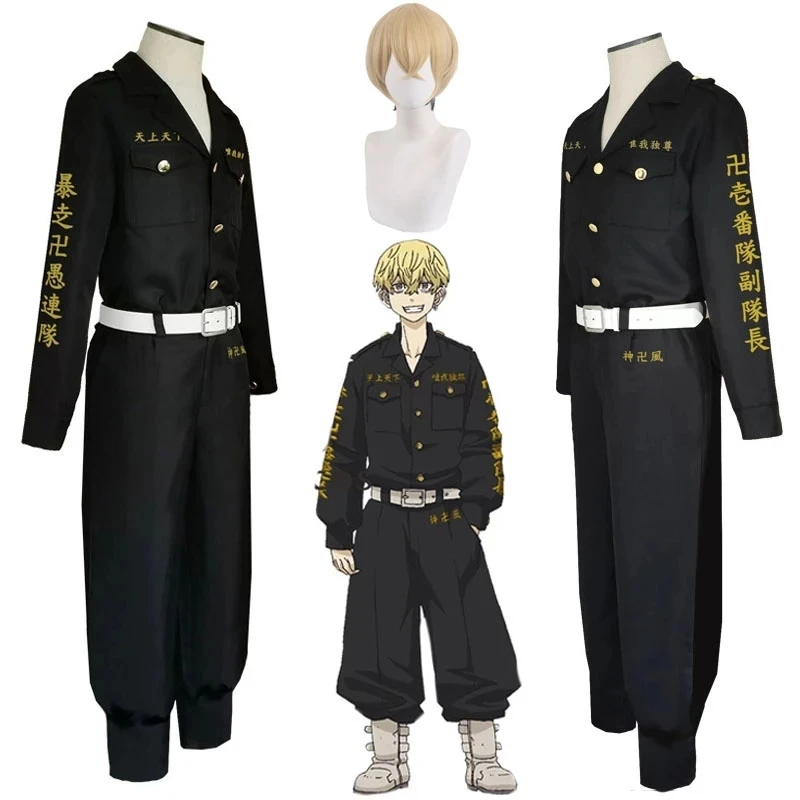 Костюм из аниме Токийские мстители Chifuyu Matsuno, парик, черная униформа, топ, брюки, пояс, вечерние мы для ролевых игр на Хэллоуин