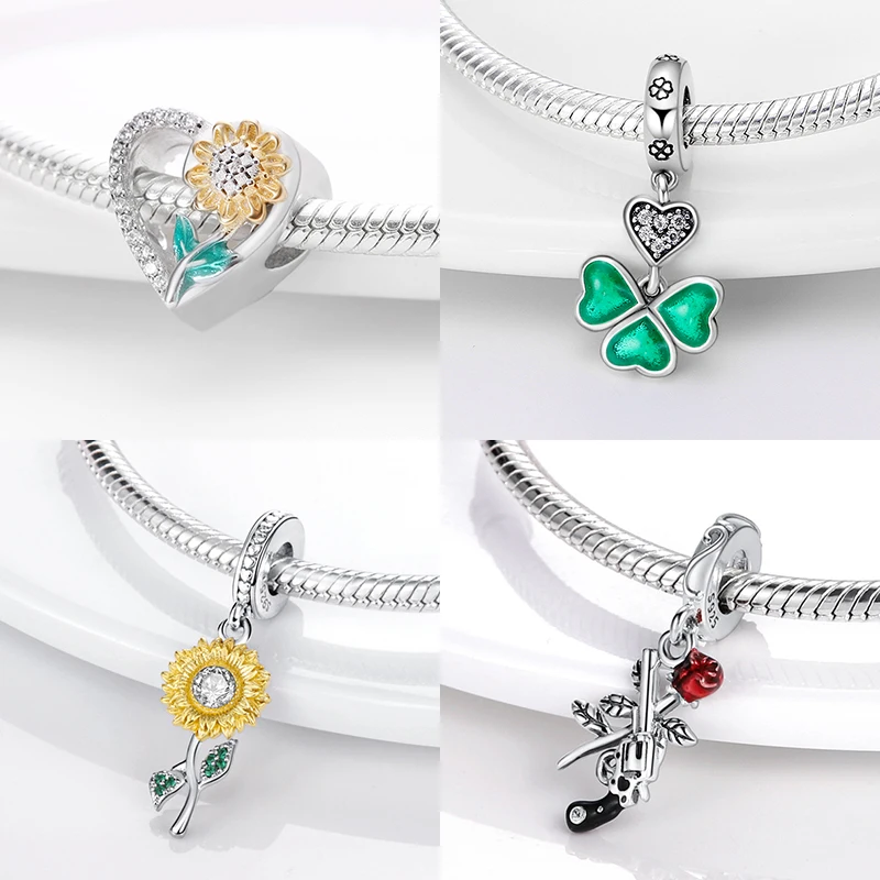 Подвески-бусины в форме хризантемы, подходят для оригинального браслета Pandach, женские подвесные бусины plata de ley, бижутерия сделай сам