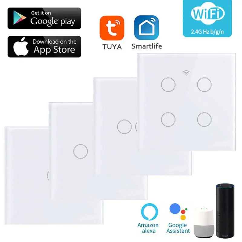 Умный сенсорный выключатель Tuya, Wi-Fi, без нейтрального провода, для умного дома, 1234 клавиши, выключатель света, 220 В, поддержка Alexa Google Home