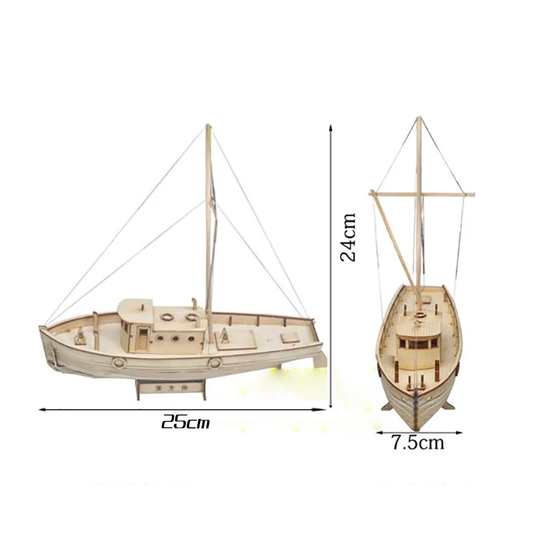AНазвание: рыбацкая лодкаМасштаб: около 1/50Материал: ДеревянныйИнструкция: китайский с изображением.Сложный уровень: легкий (>13 лет)Размер готового изделия: 250*90*240 мм