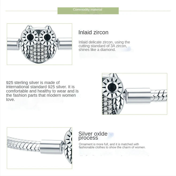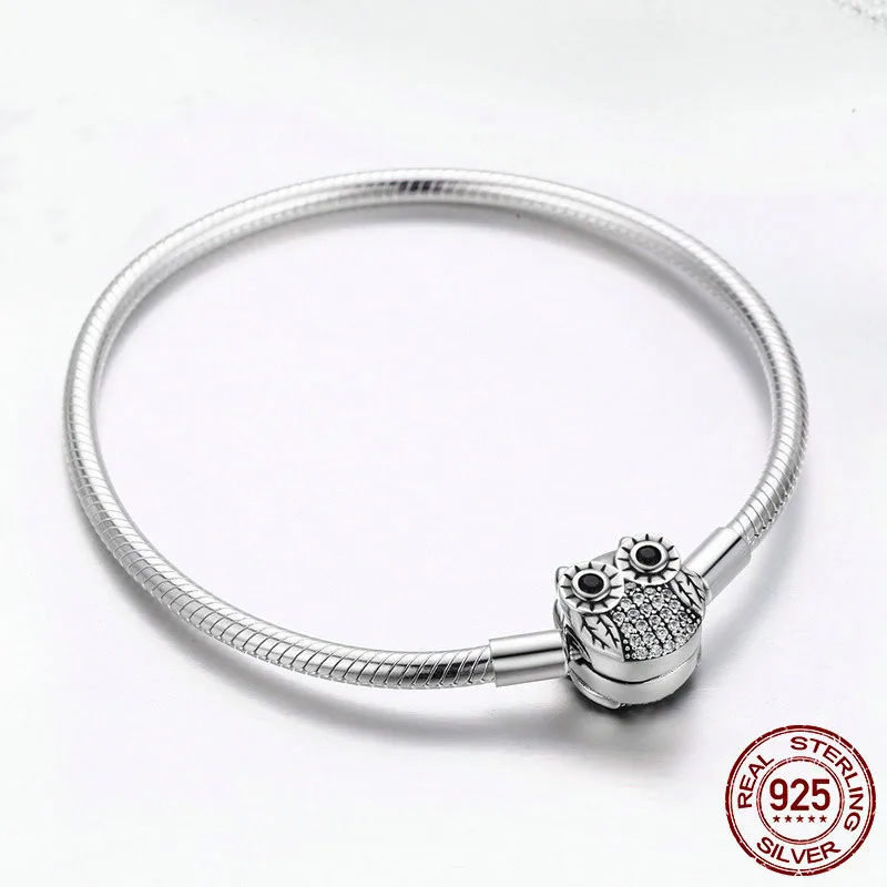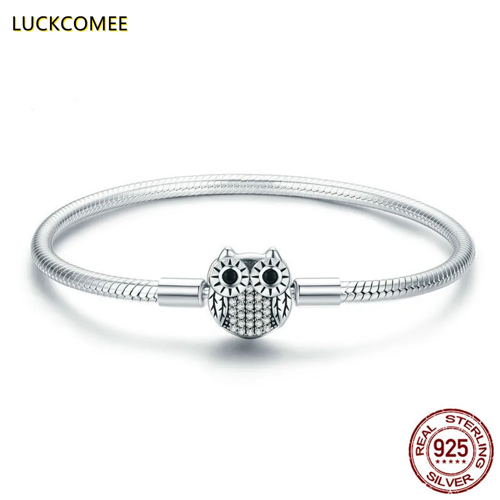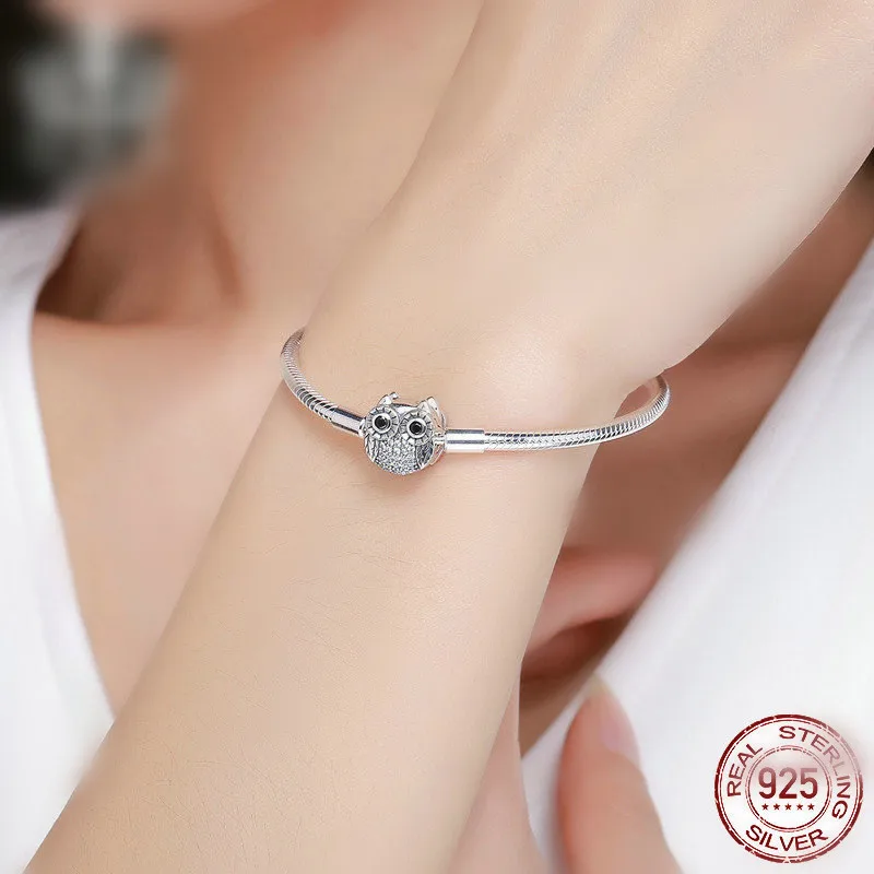 S925 стерлингового серебра милая сова Женские браслеты для рук вес 15,31 г классические серебряные ювелирные изделия браслет Pandora 925 Оригинал Scb067