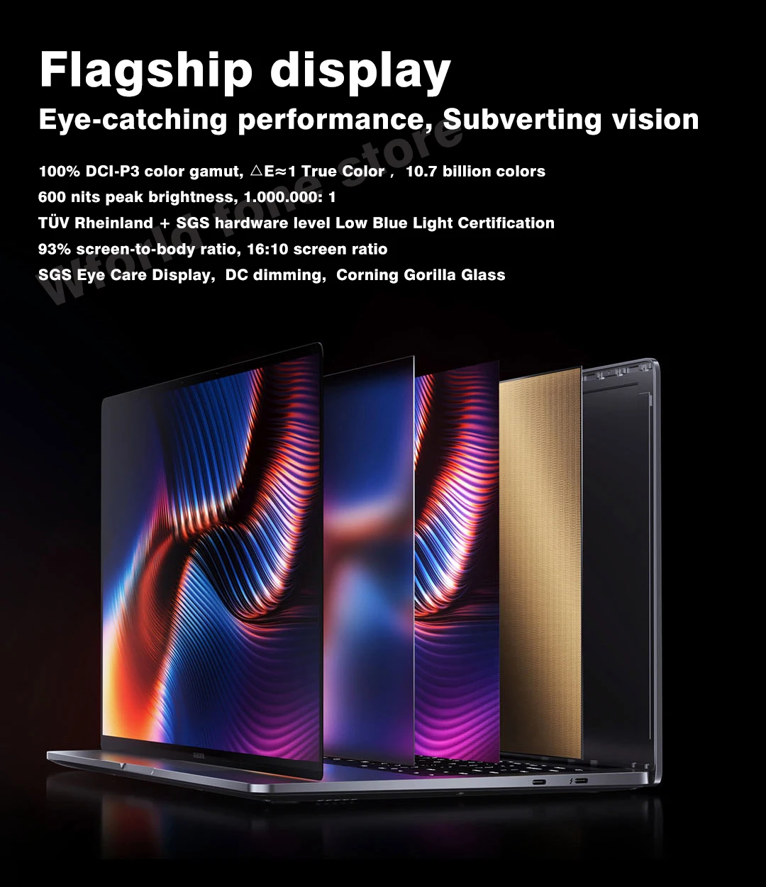 15,6 "OLED Супер экран retina.Разрешение 3456x21603,6 мм узкой рамкой * 93% соотношение экрана к корпусу *, DeltaE≈ 1 (типичное значение)16:10 соотношение дисплея, защитное стекло Corning, угол обзора 170 °, 261PPI600 нит пиковая яркость, 1000000:1 Коэффициент контрастности *,100% sRGB цветовая гамма/100% DCI-P3 цветовая гамма на уровне кинотеатра, поддержка диммирования постоянного тока *, частота обновления 60 ГцПрошел сертификацию немецкого Rheinland TuV аппаратного низкого уровня синий светильникSGS низкий синий светильник Сертификация