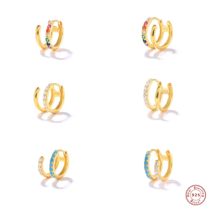 925 пробы, серебряные, радужные, циркониевые, двойные круглые серьги Huggie для женщин, левое, правое ухо, бирюзовые, хрящи, 1 шт.
