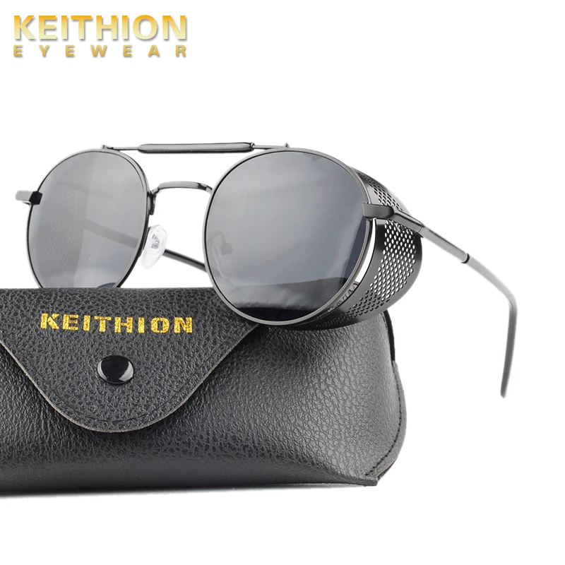 Солнцезащитные очки KEITHION в стиле стимпанк для мужчин и женщин, винтажные круглые поляризационные очки в стиле ретро, Matel Frame с защитой UV400