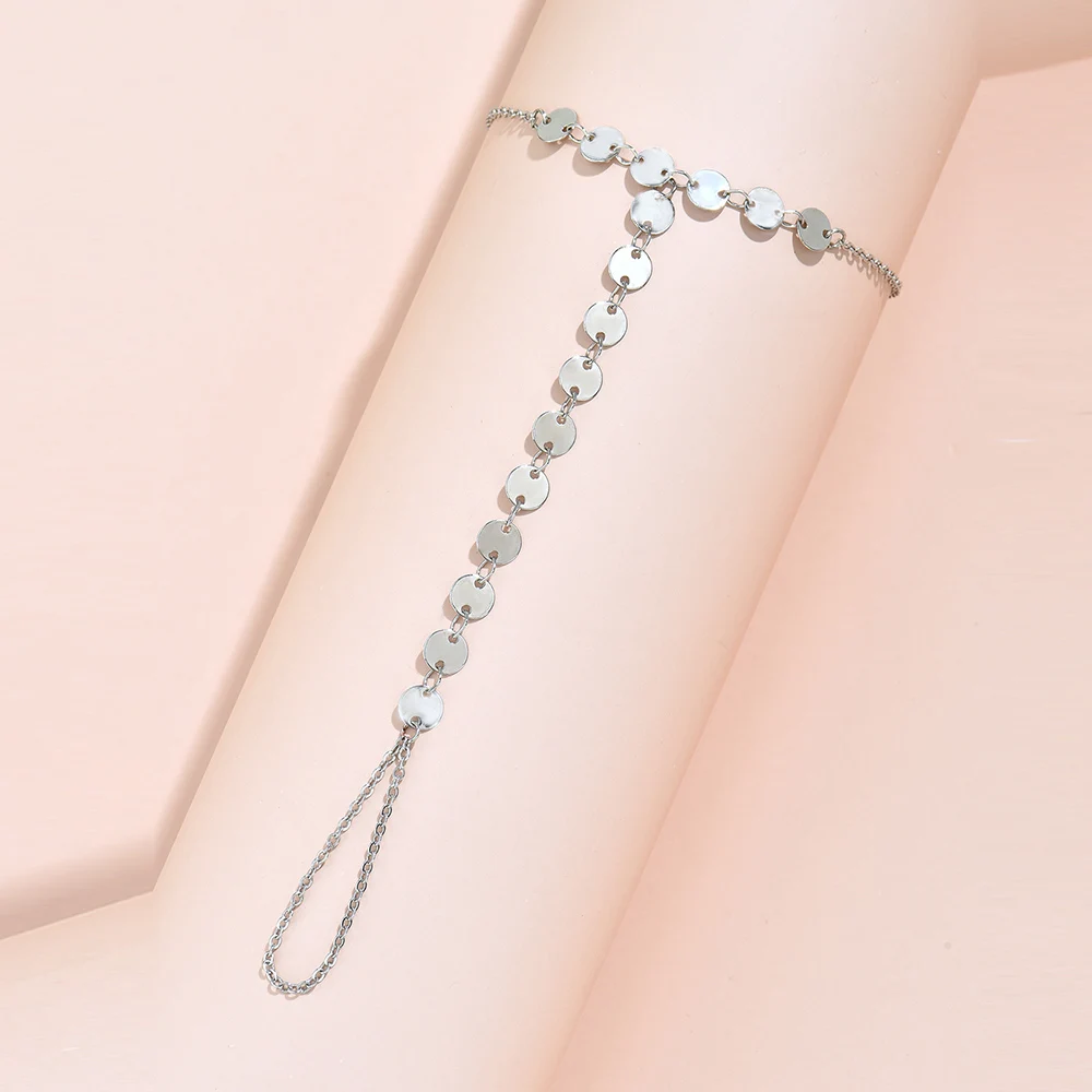 Посеребренные металлические плоские круглые звенья цепи с диском браслеты 2022 новые цепи соединяющий браслет кольцо на палец женский подарок