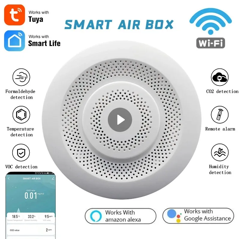 1. Умная воздушная коробка является домом для интеллектуального устройства для удаленного мониторинга воздушной среды, она также может обнаруживать формальдегид, ЛОС ядовитого газа, CO2, температуру, влажность и так далее 5 видов экологических параметров, экологические параметры автоматически превышают цену, когда граффити умный дом кондиционер воздуха, новый вентилятор, увлажнитель воздуха, Очиститель воздуха для оптимизации бытовой среды.