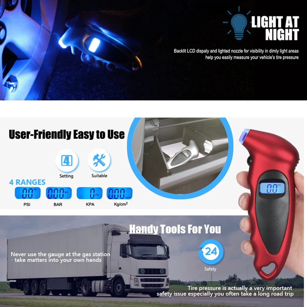 Check просмотрите наше видео и сделайте Быстрый тур по этому манометру! ЖК-дисплей с подсветкой и светильник ed сопло для видимости в тусклых областях, светильник для чулок для мужчин и женщин.