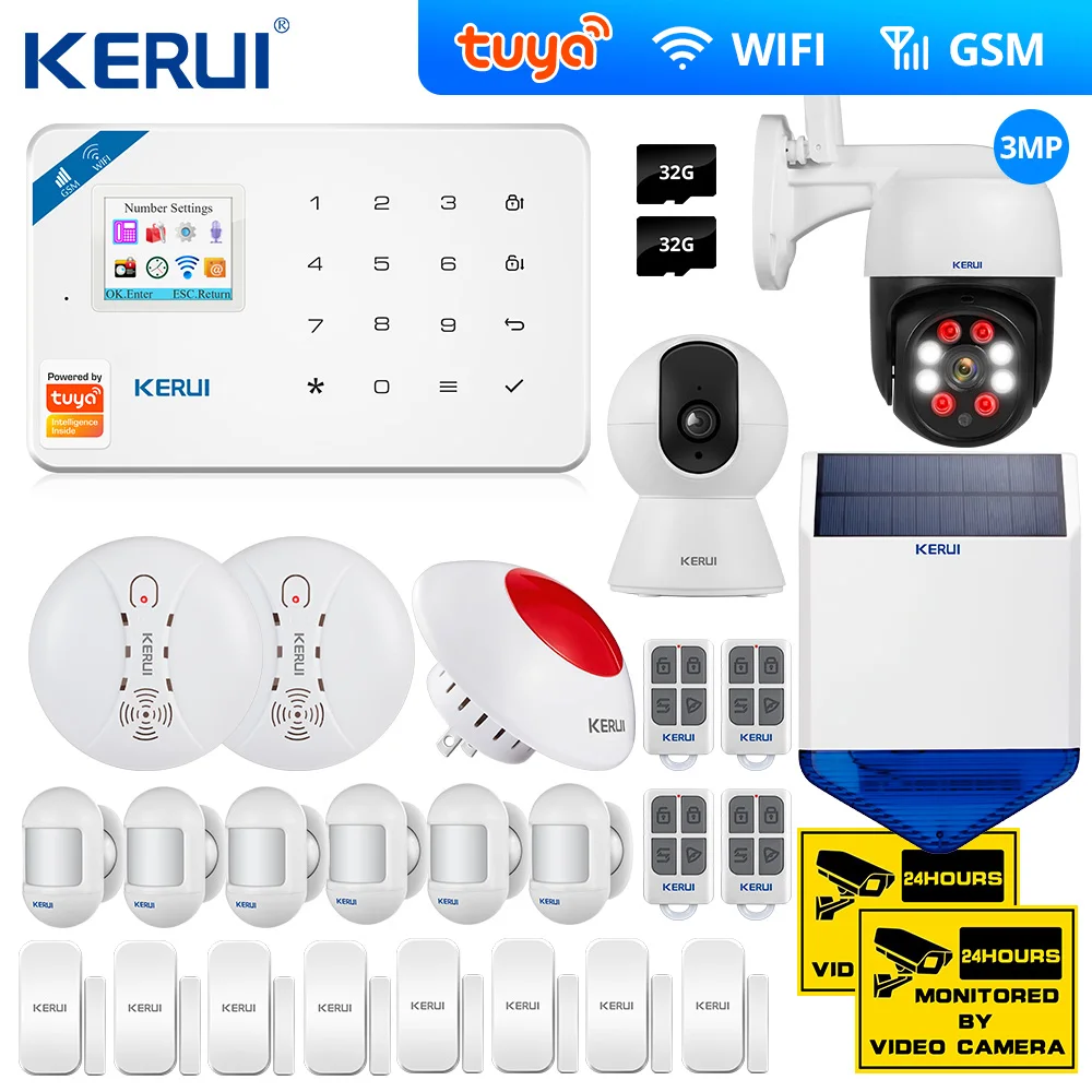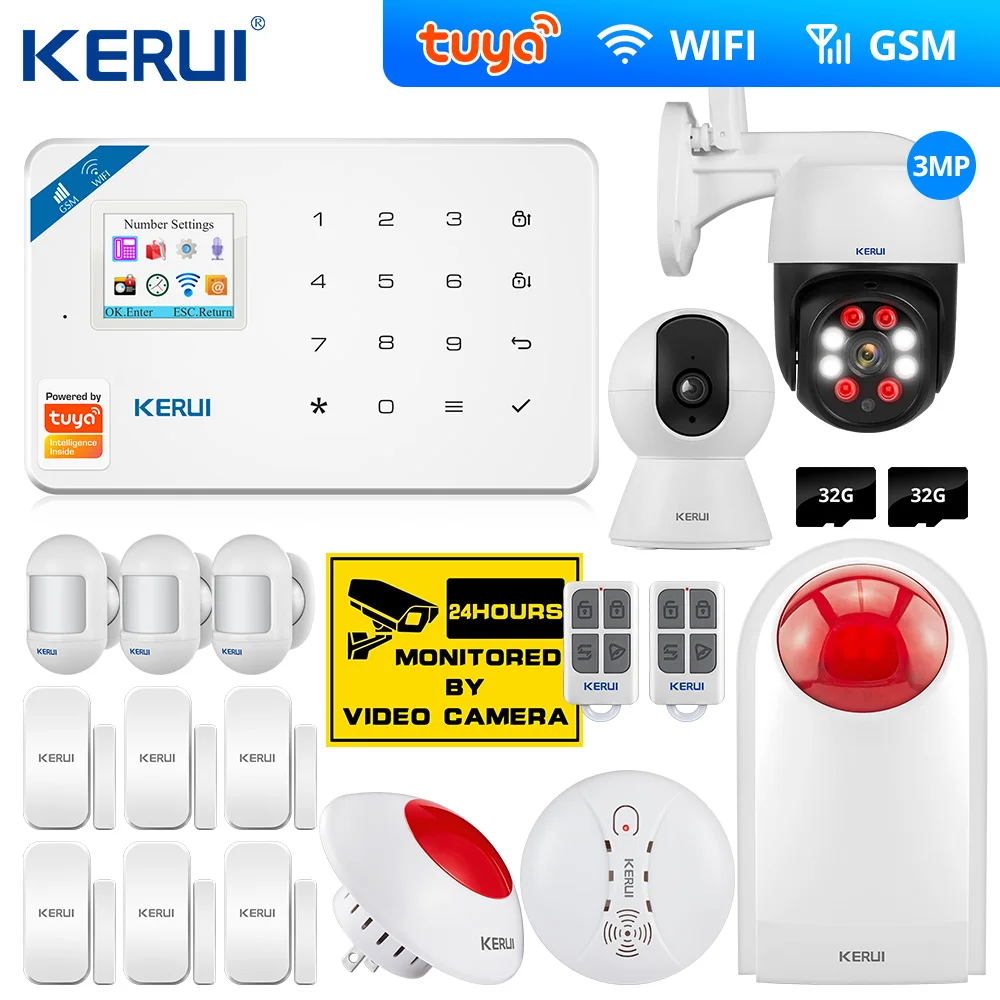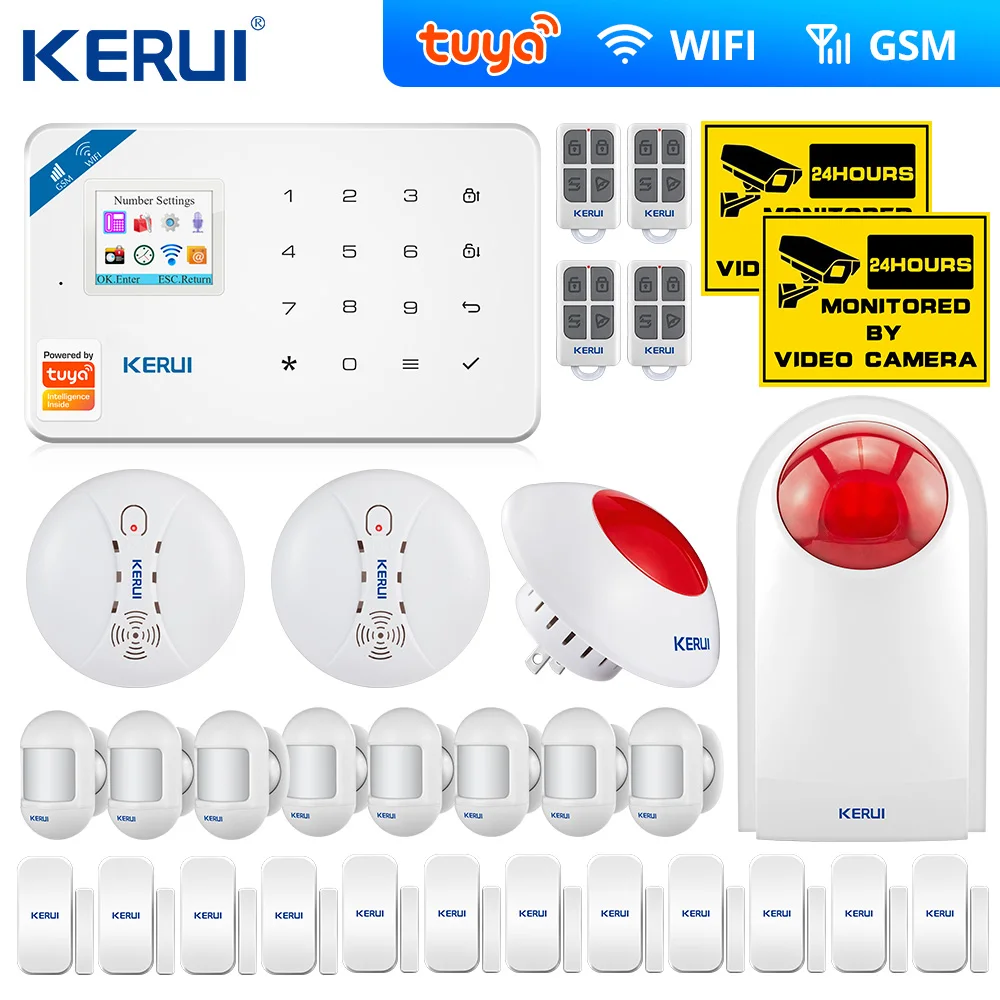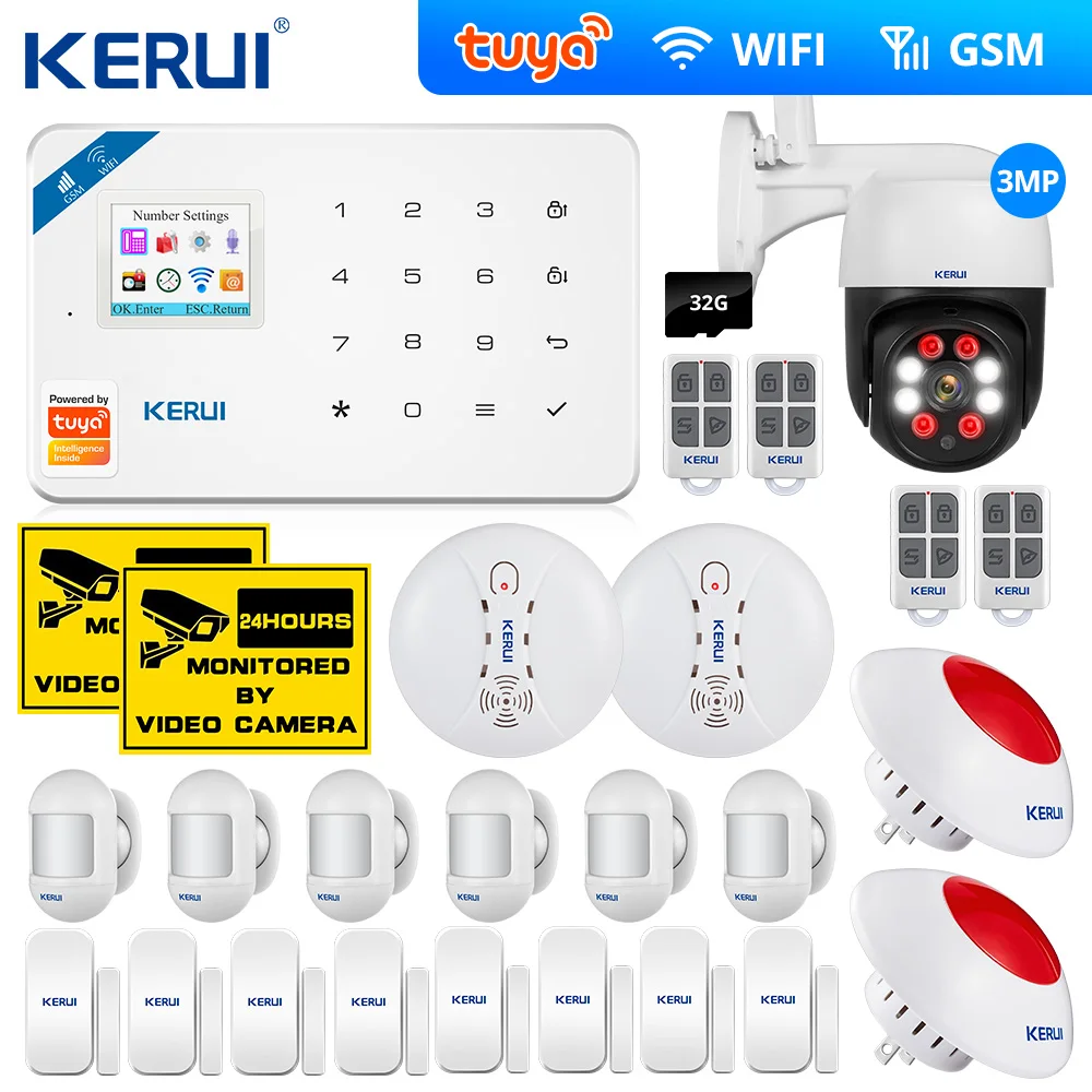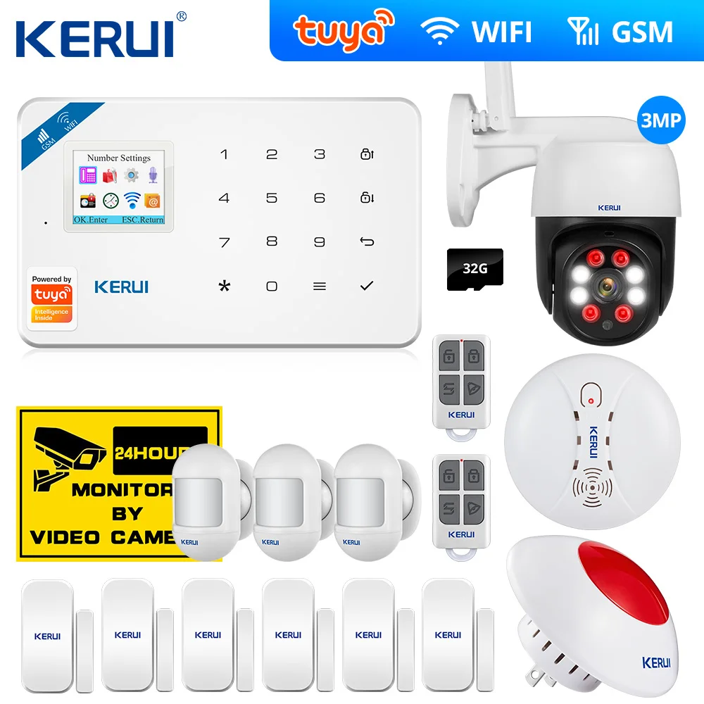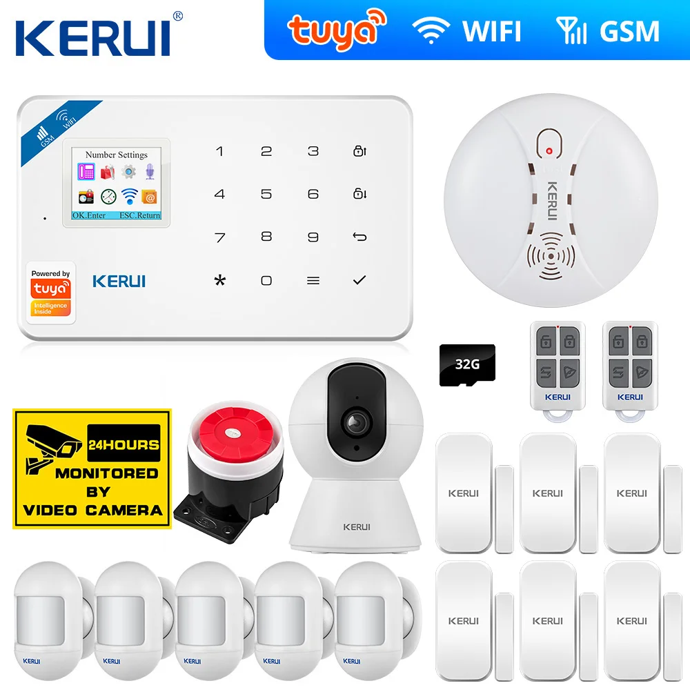 Беспроводная система охранной сигнализации KERUI WIFI Tuya Smart APP GSM, комплект датчиков дистанционного управления для дома, IOS, Android, камера, дистанционное управление