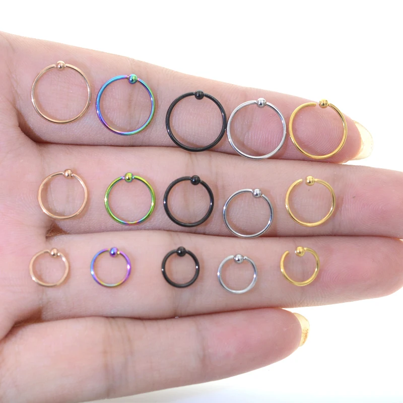 Серьги-кольца из стали для пирсинга носа, губ, тела, 2 шт.