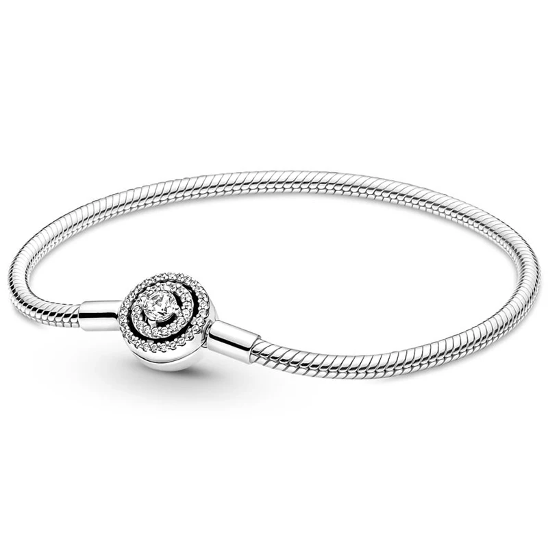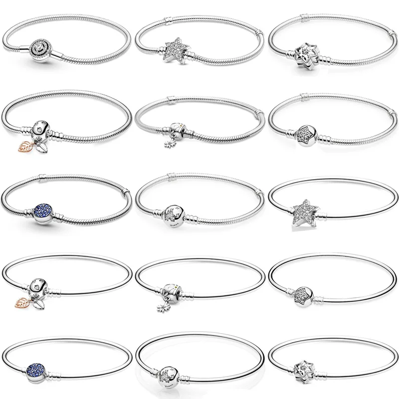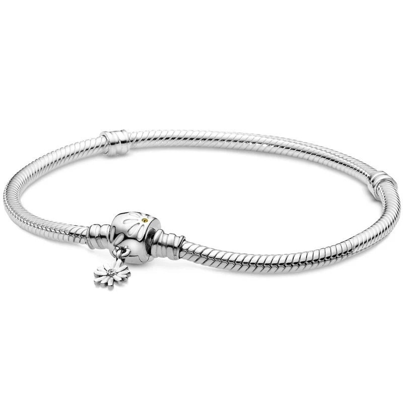 Новинка, Змеиный браслет-цепочка с застежкой, серебряные моменты, гало, Маргаритка, цветок, листья, звезда, украшение