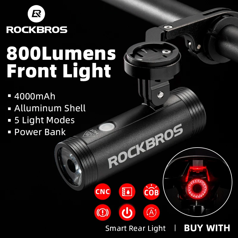 Велосипесветильник фсветильник ROCKBROS, 800 лм, 4000 мА ч, крепление для Gopro