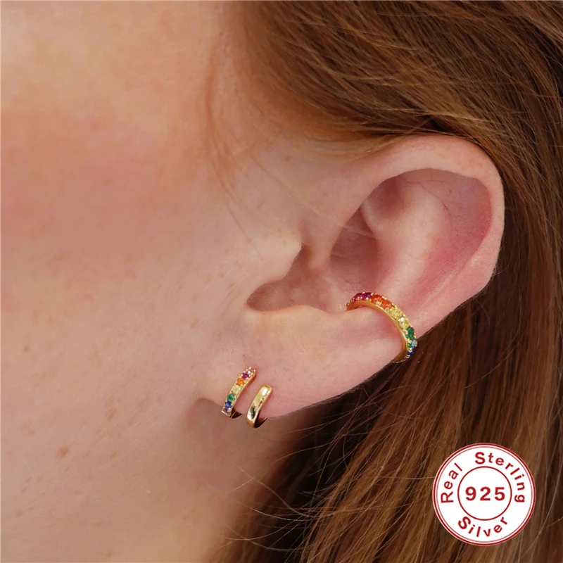 Женские серьги-Клипсы из серебра 925 пробы с радужным цирконием