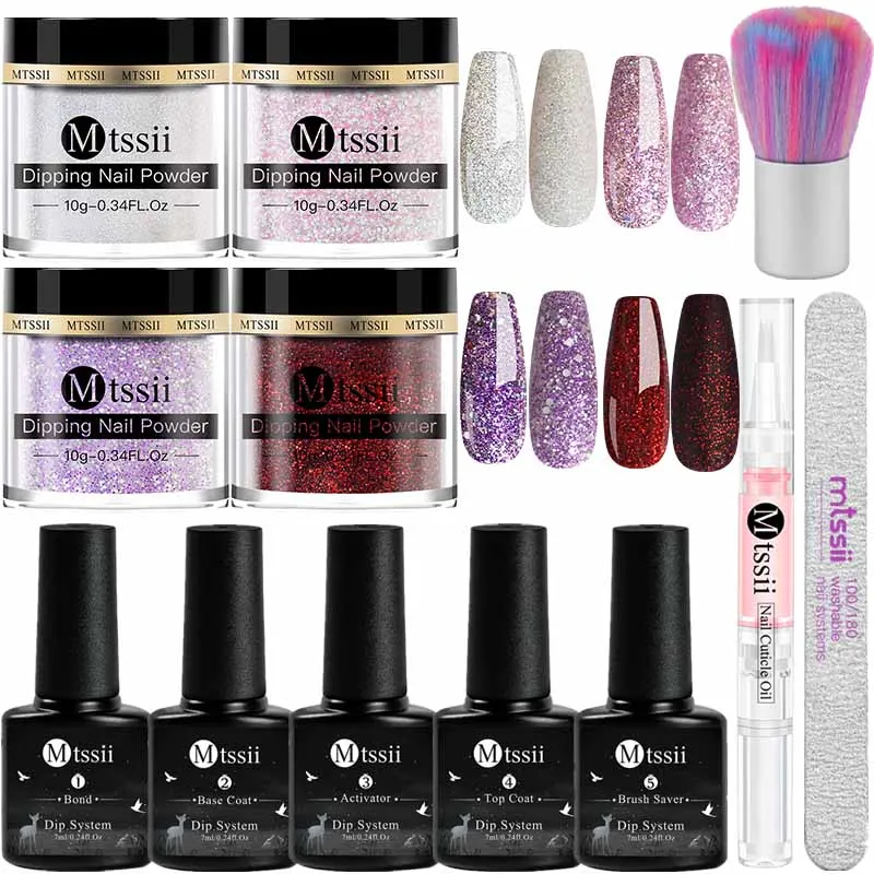 Mtssii 10 шт.лот набор порошков для ногтей 10 г голографическая блестящая пудра Пыль натуральная сухая оцинкованная система акриловый порошок наборы
