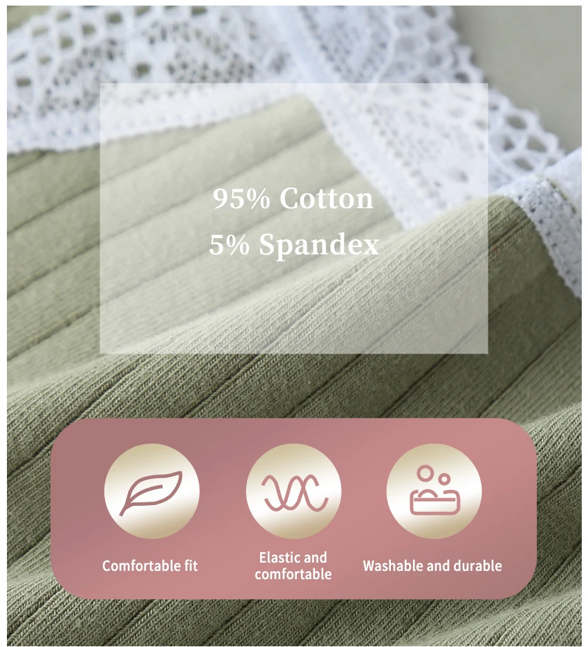 Трусы женские хлопковые кружевные, с высокой талией, дышащие