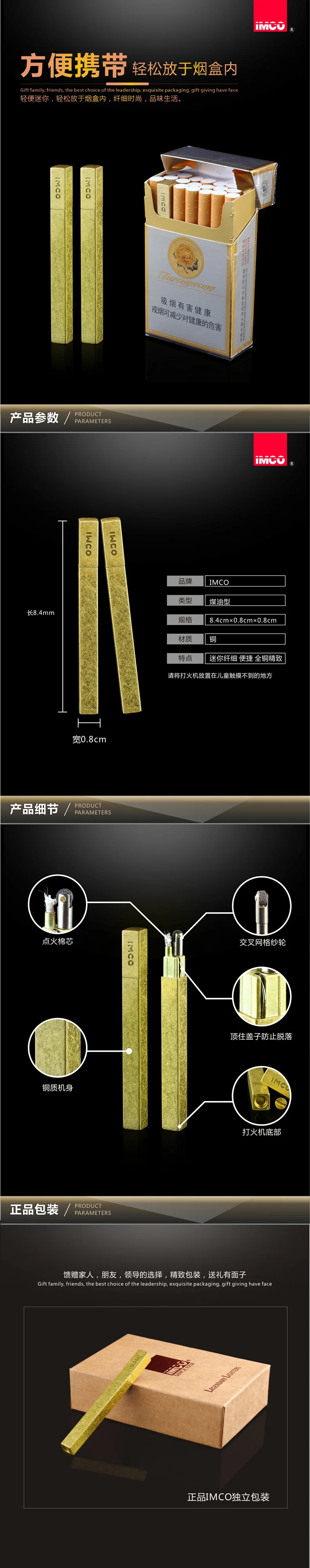 Зажигалка IMCO, тонкая мини-зажигалка с маслом, бензиновой зажигалка, фитиль, кремний, сигара, огонь, чистая медь, бензин