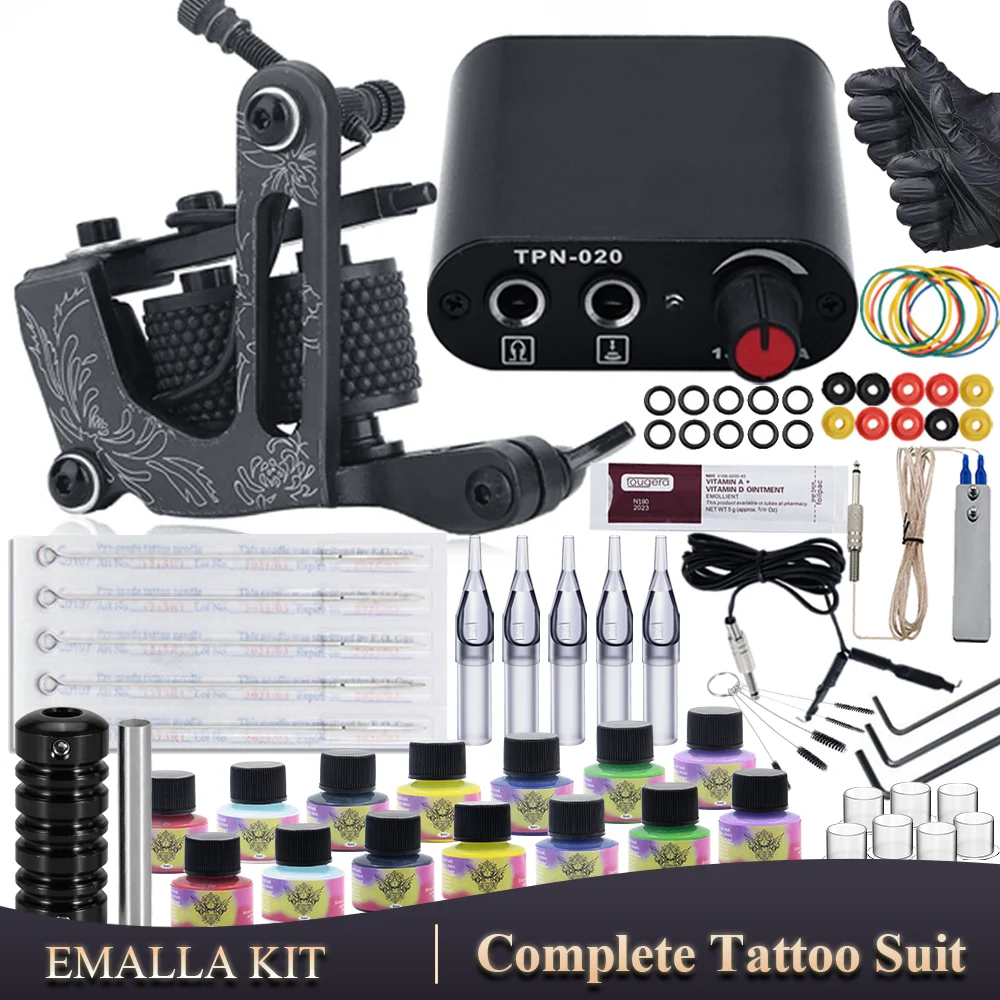 Набор татуировок EMALLA, полный набор татуировок, пулемет с чернилами, блок питания, ручки для татуировок, инструменты для красоты, аксессуары для татуировок