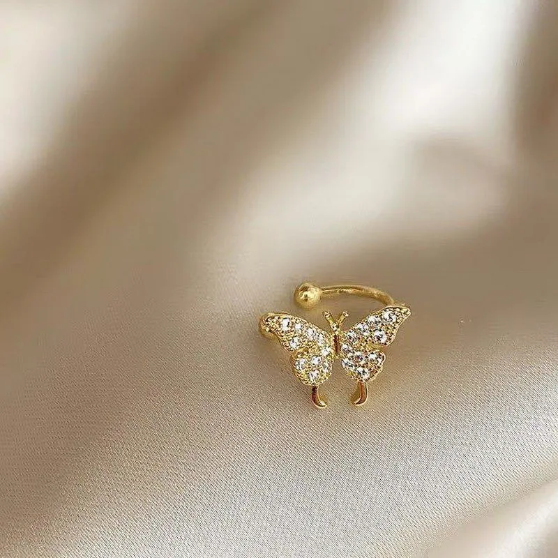 Зажим для ушей с фианитом в виде бабочки, зажим для ушей для женщин...